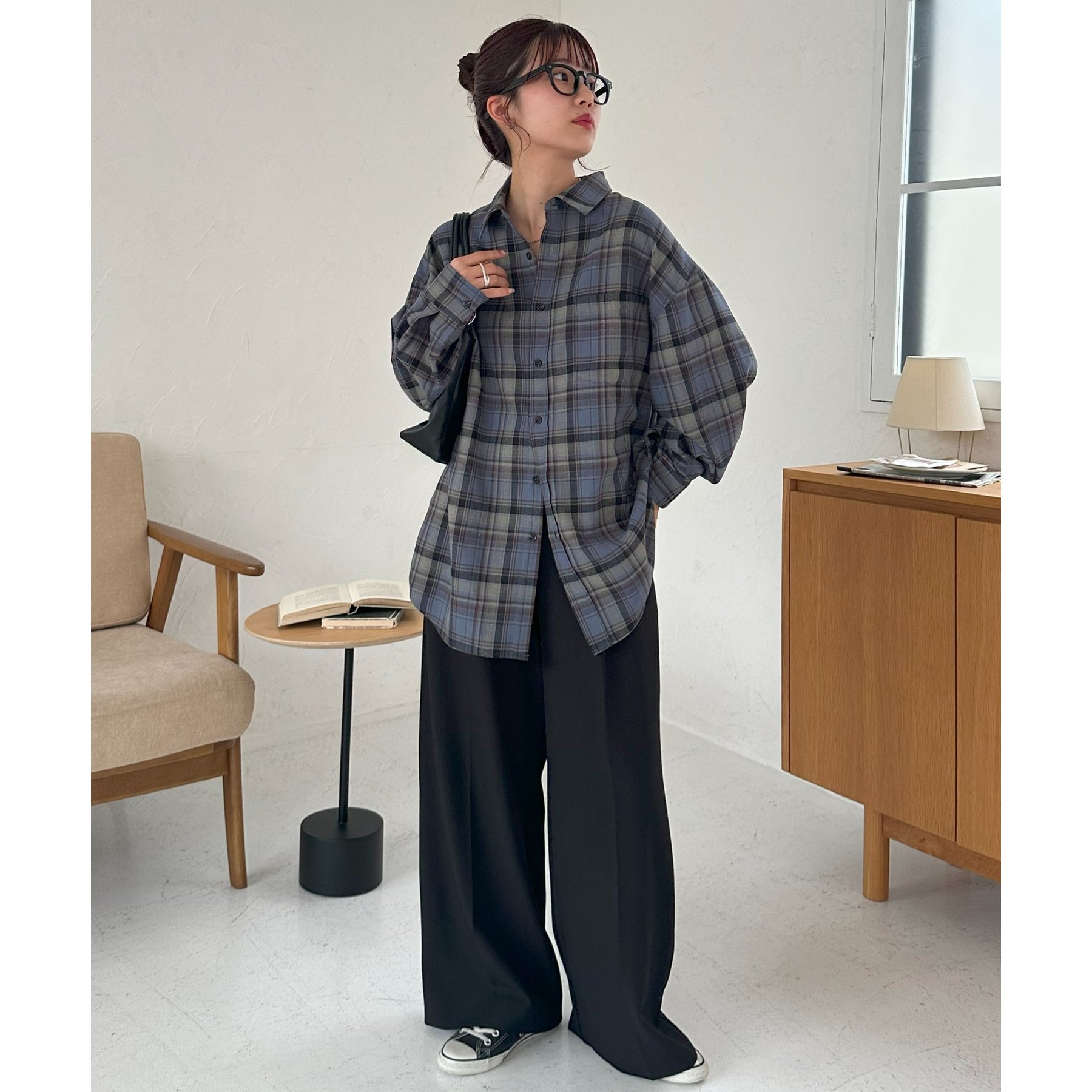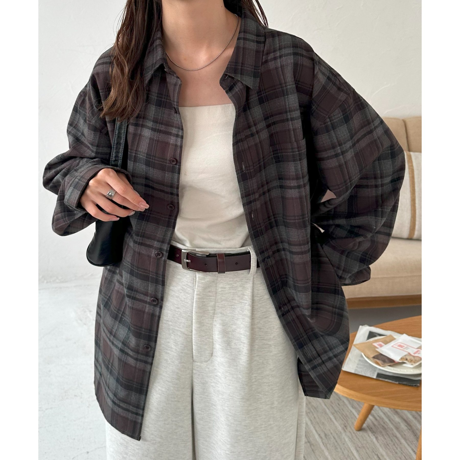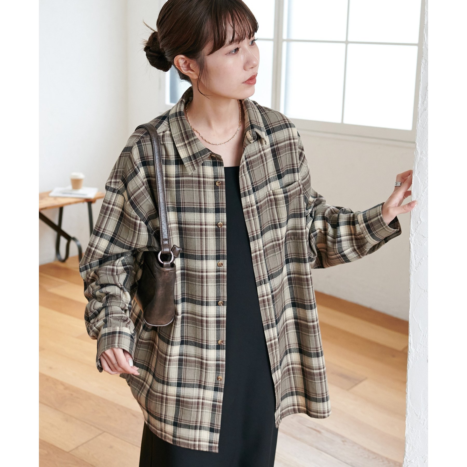 トレンド感のあるチェック柄を取り入れた、ゆったりシルエットのオーバーシャツ。