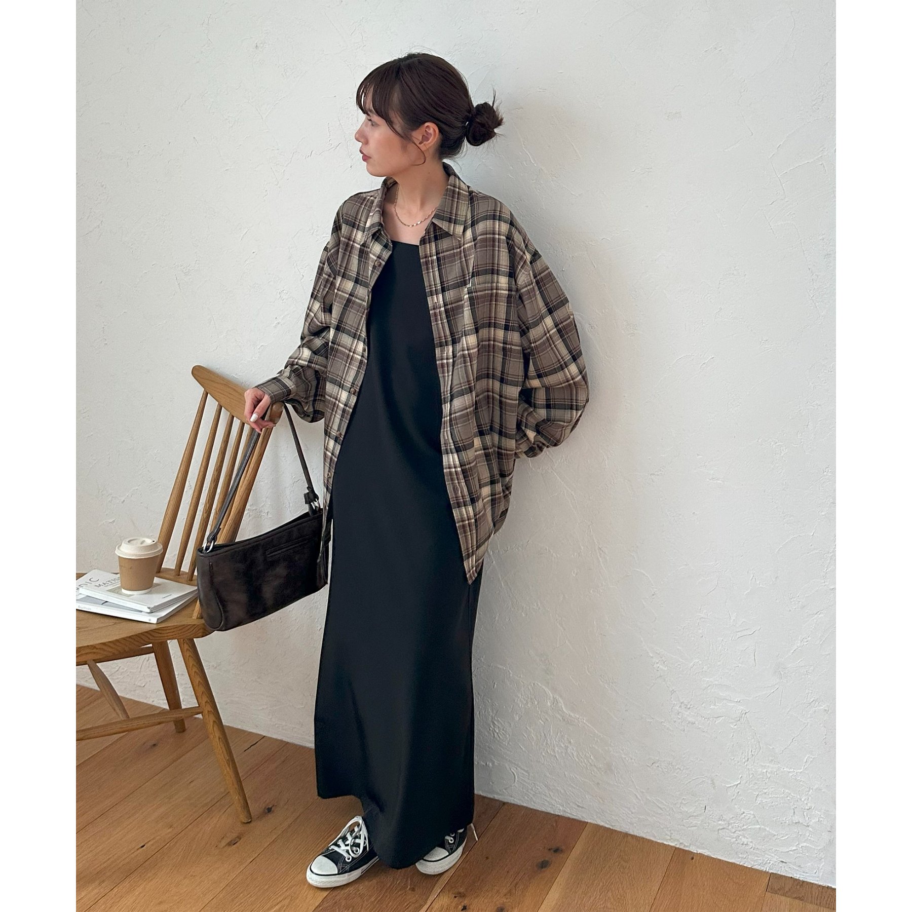 154 cmレディーススタッフ:丈感がしっかりあるので、お尻がすっぽり隠れるくらいの安心感があります。全体的にゆったりしていてリラックス感があり、肩も落ちてルーズな雰囲気にも◎前を開けて羽織るスタイルだと軽やかに見えて、ボタンを留めるとシャツワンピ風にも着られそうです!