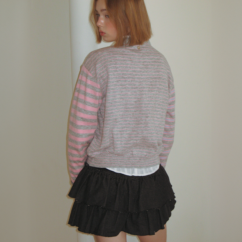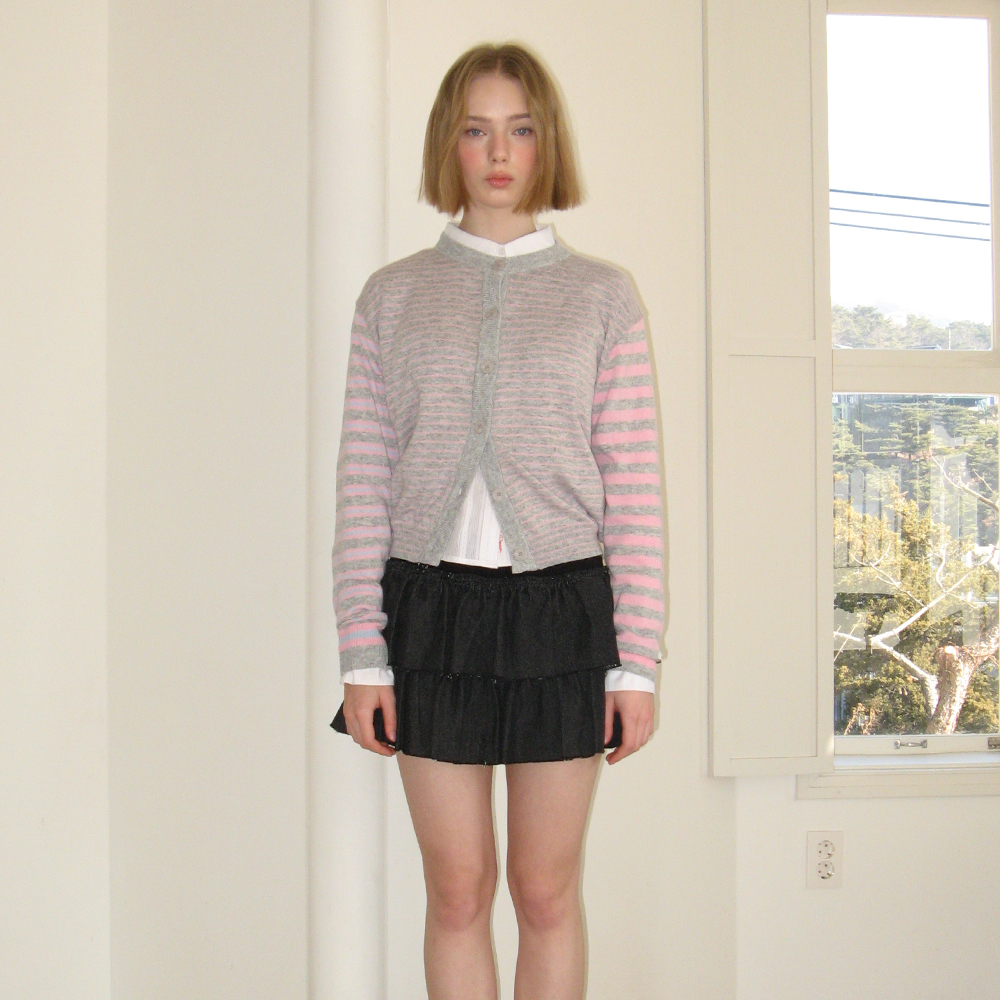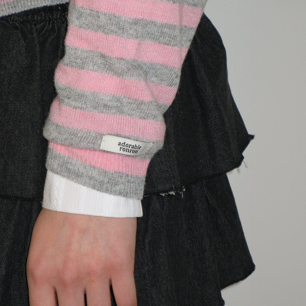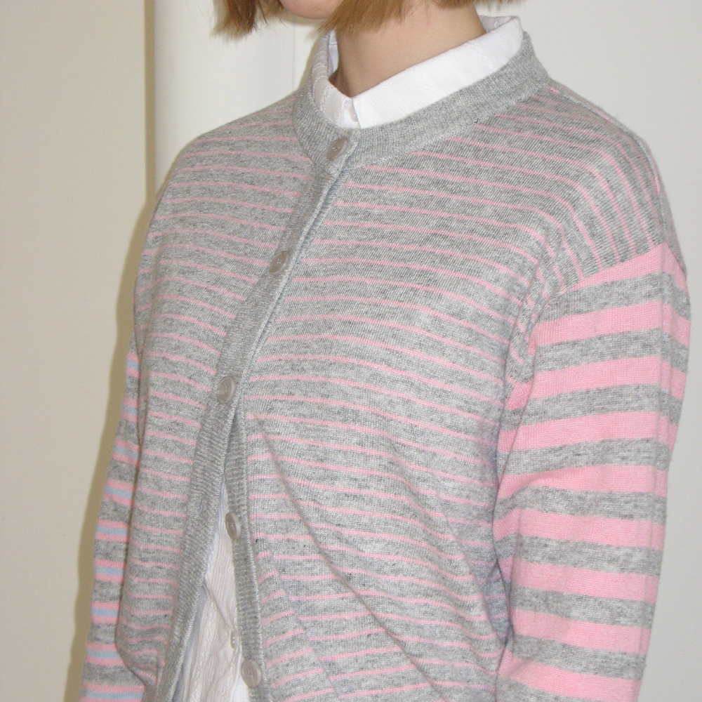 TRIPLE STRIPE HARMONY KNIT CARDIGAN PINK GREY