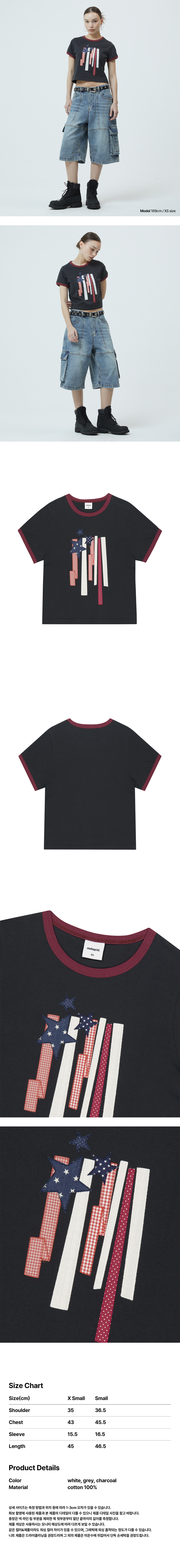 FLAG APPLIQUE RINGER CROP TEE[CHARCOAL]