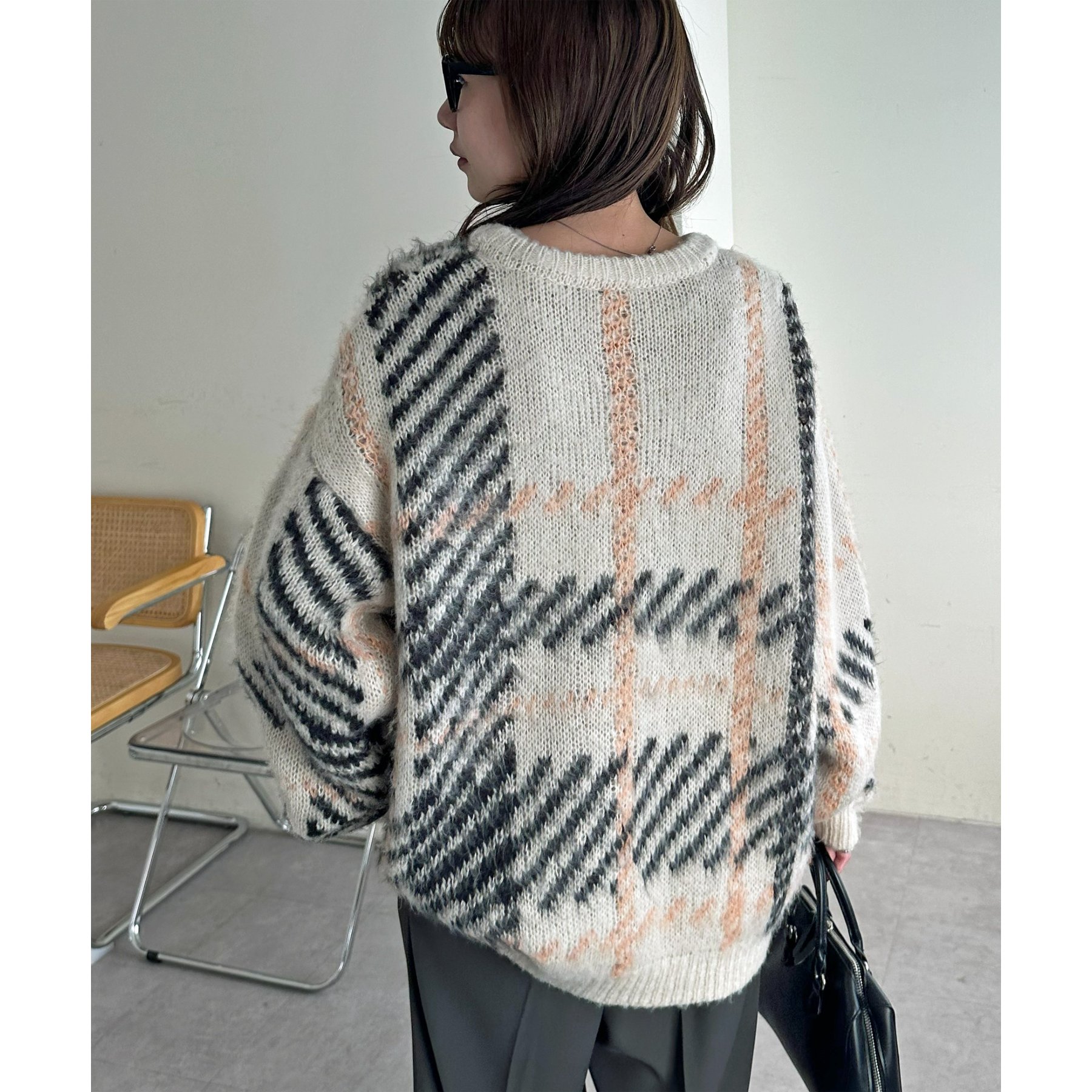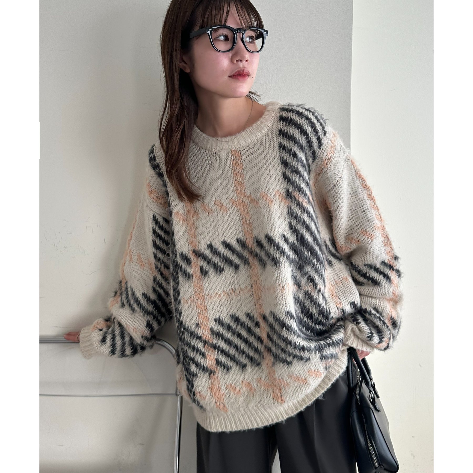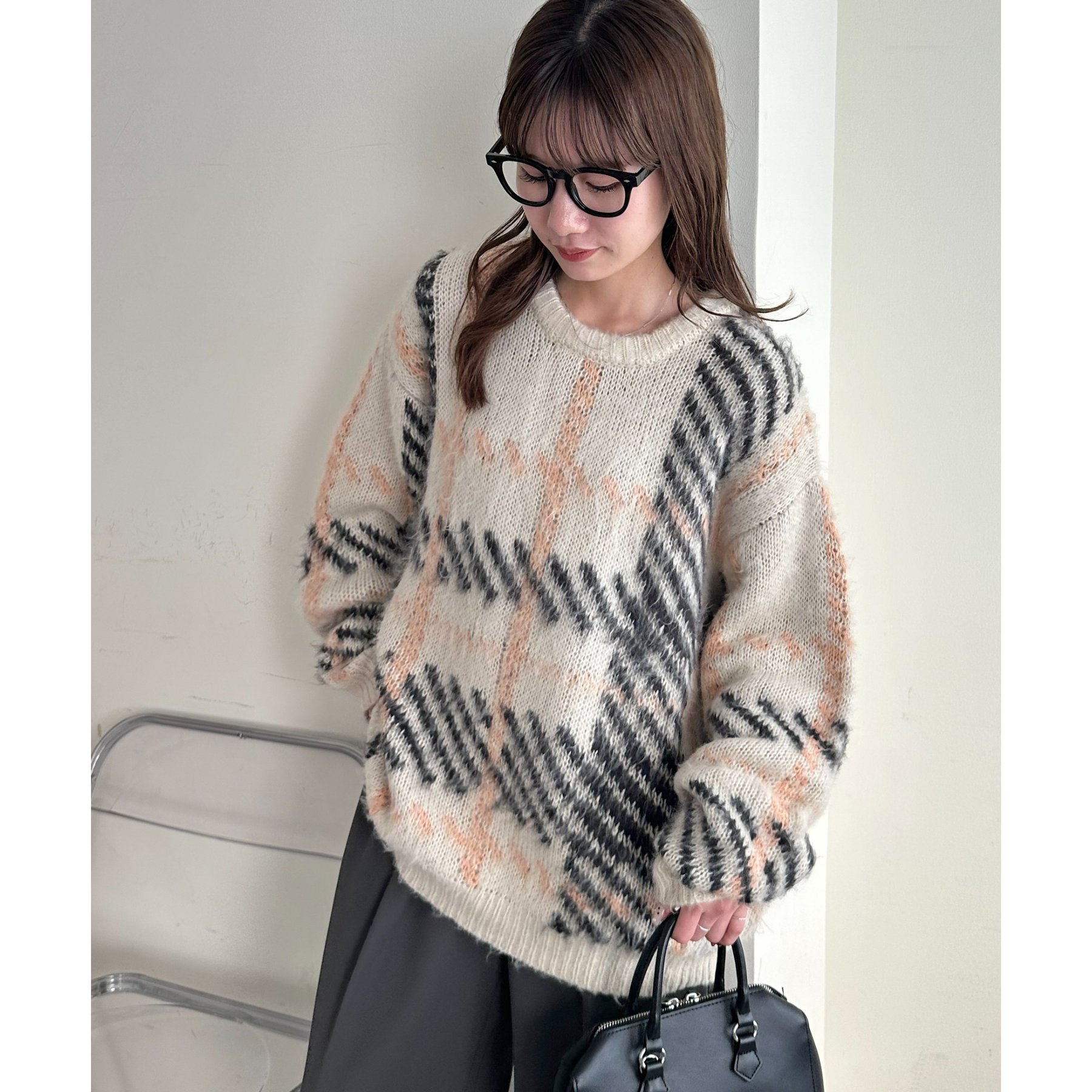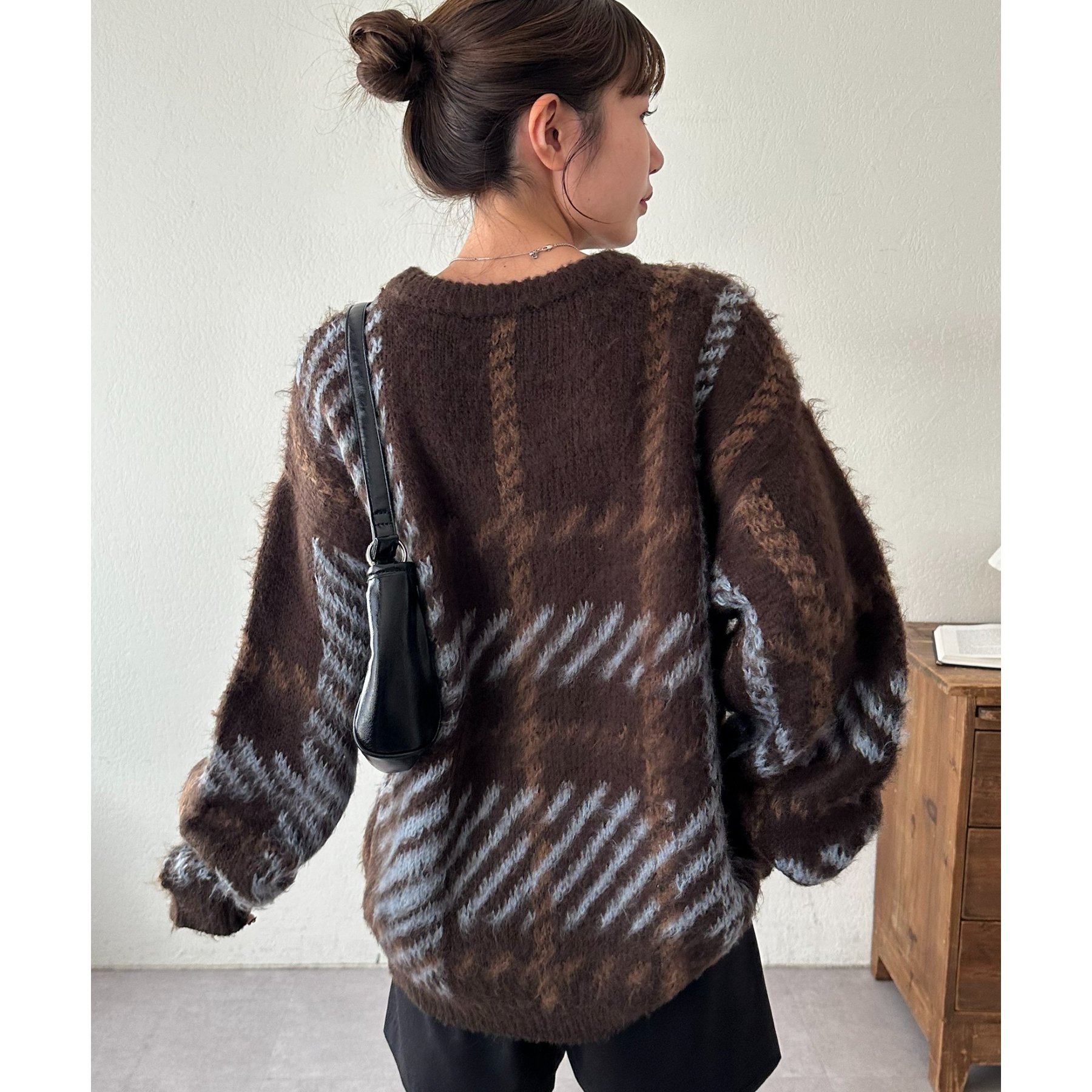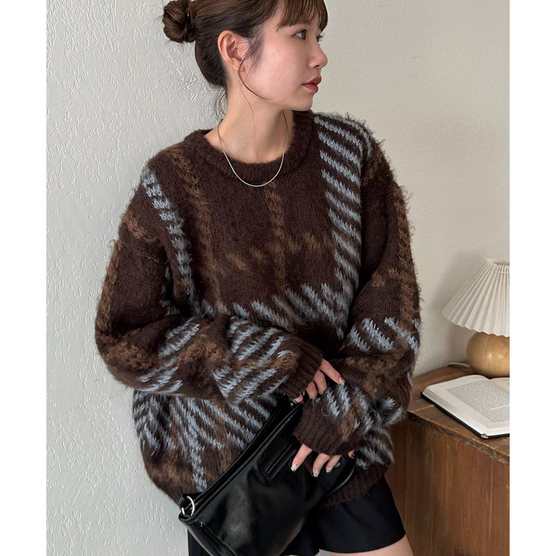 オーバーサイズですが、毛足のある素材とチェック柄が柔らかいイメージになるので、女性も着やすい〇