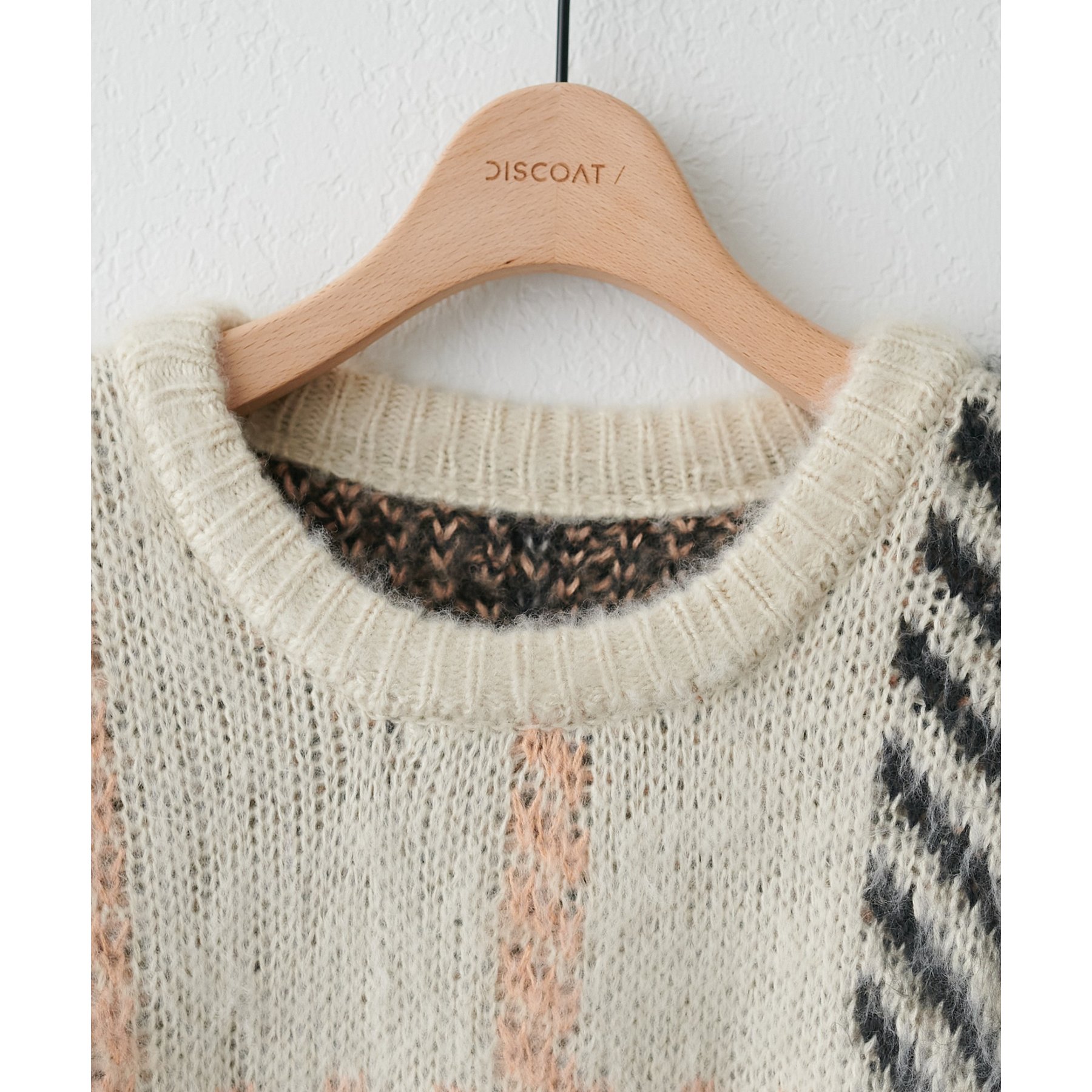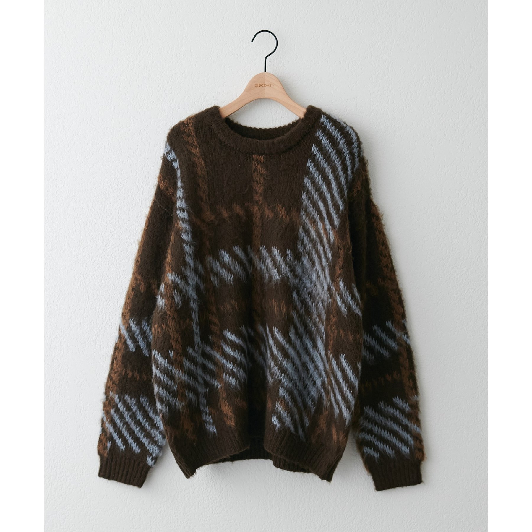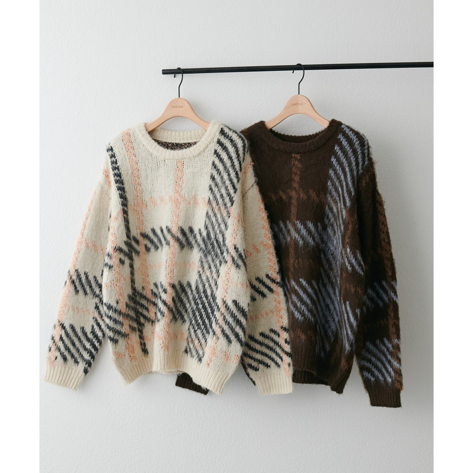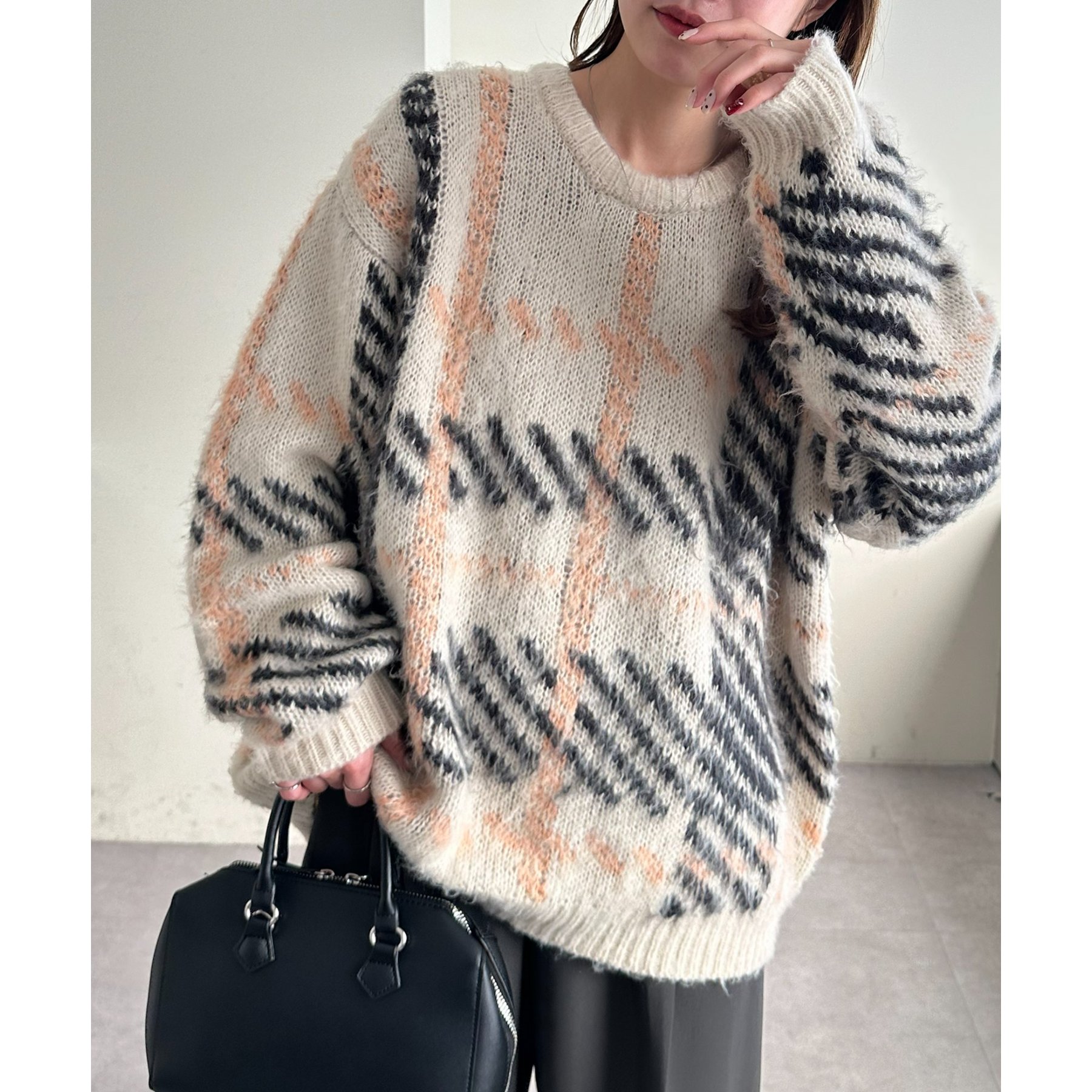 オーバーサイズですが、毛足のある素材とチェック柄が柔らかいイメージになるので、女性も着やすい〇
