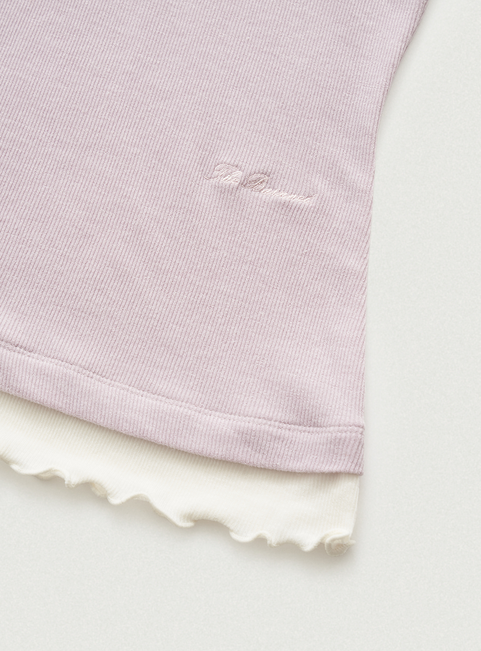 リブ編みのテクスチャーが際立つスリムフィットのレイヤードディテールTシャツ。