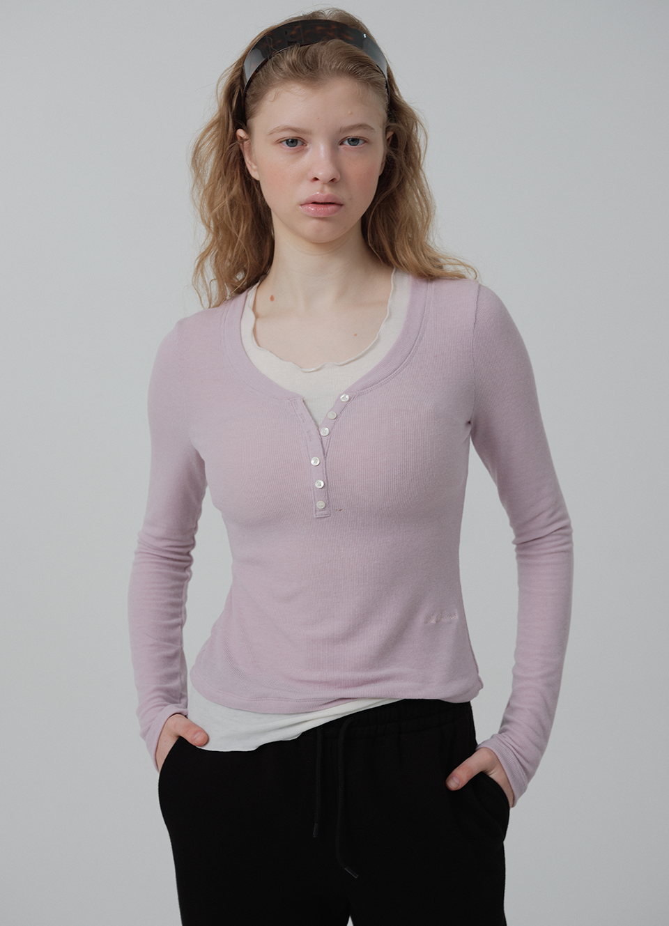 Aimee Slim Layered T-shirt_Light Pink