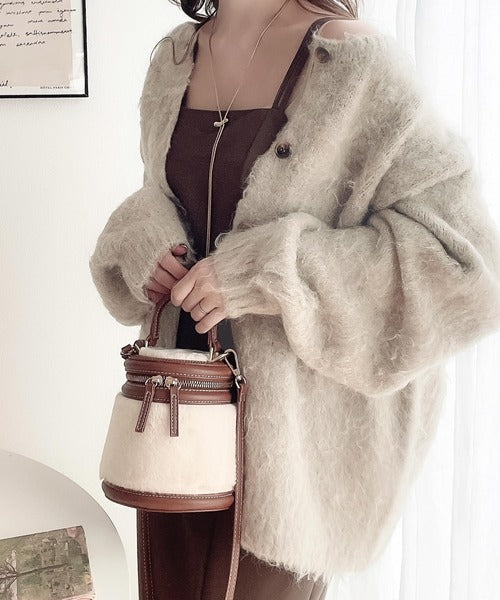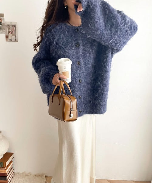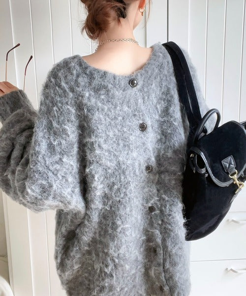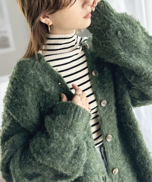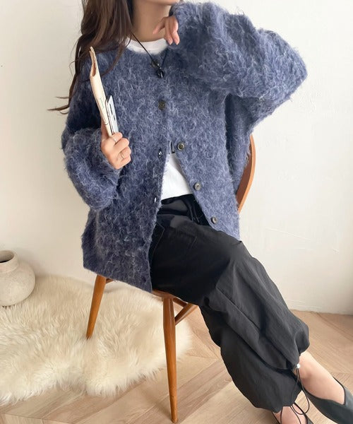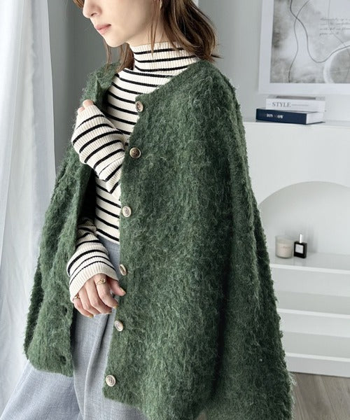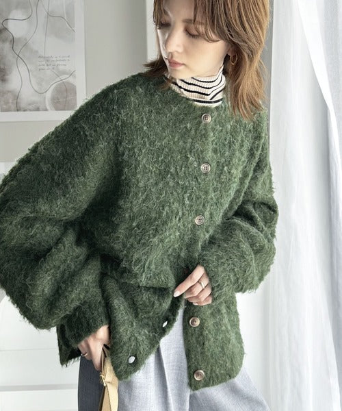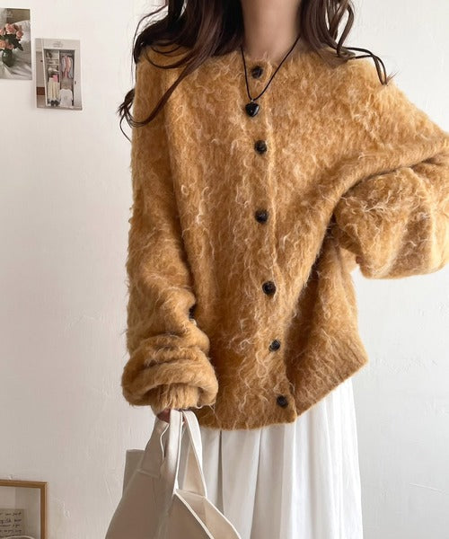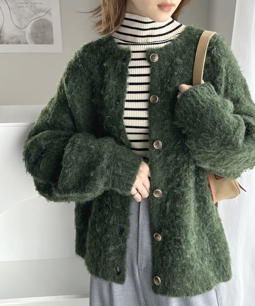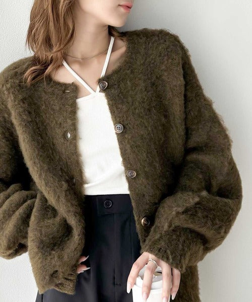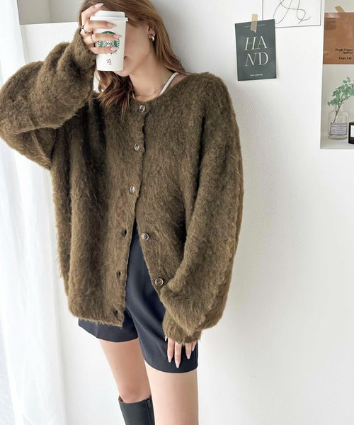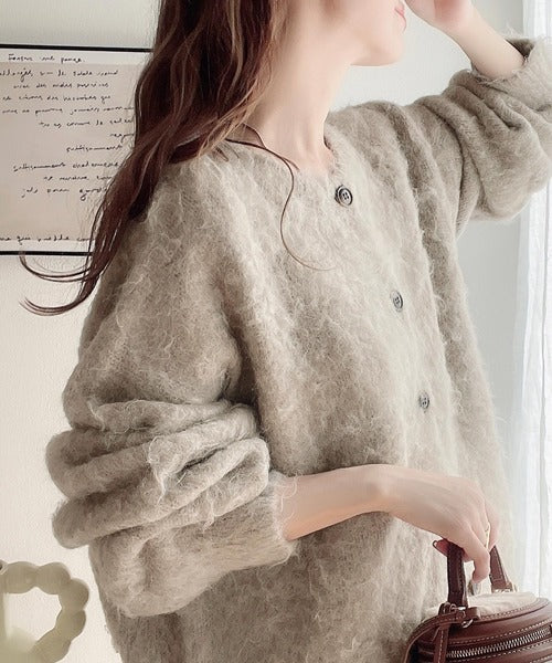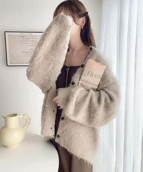 特殊な起毛の機械を使い、ふわふわに仕上げたカーディガンです。