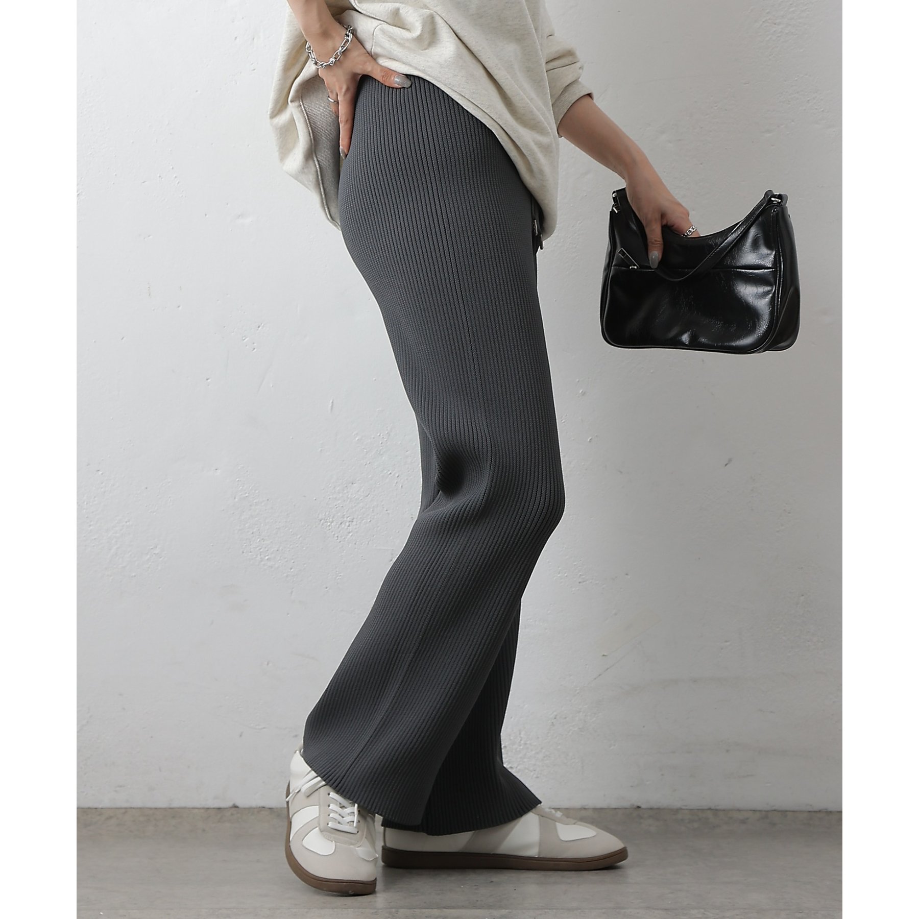 ・リブの縦ラインが、レッグラインをすっきりと見せ、美脚効果抜群◎