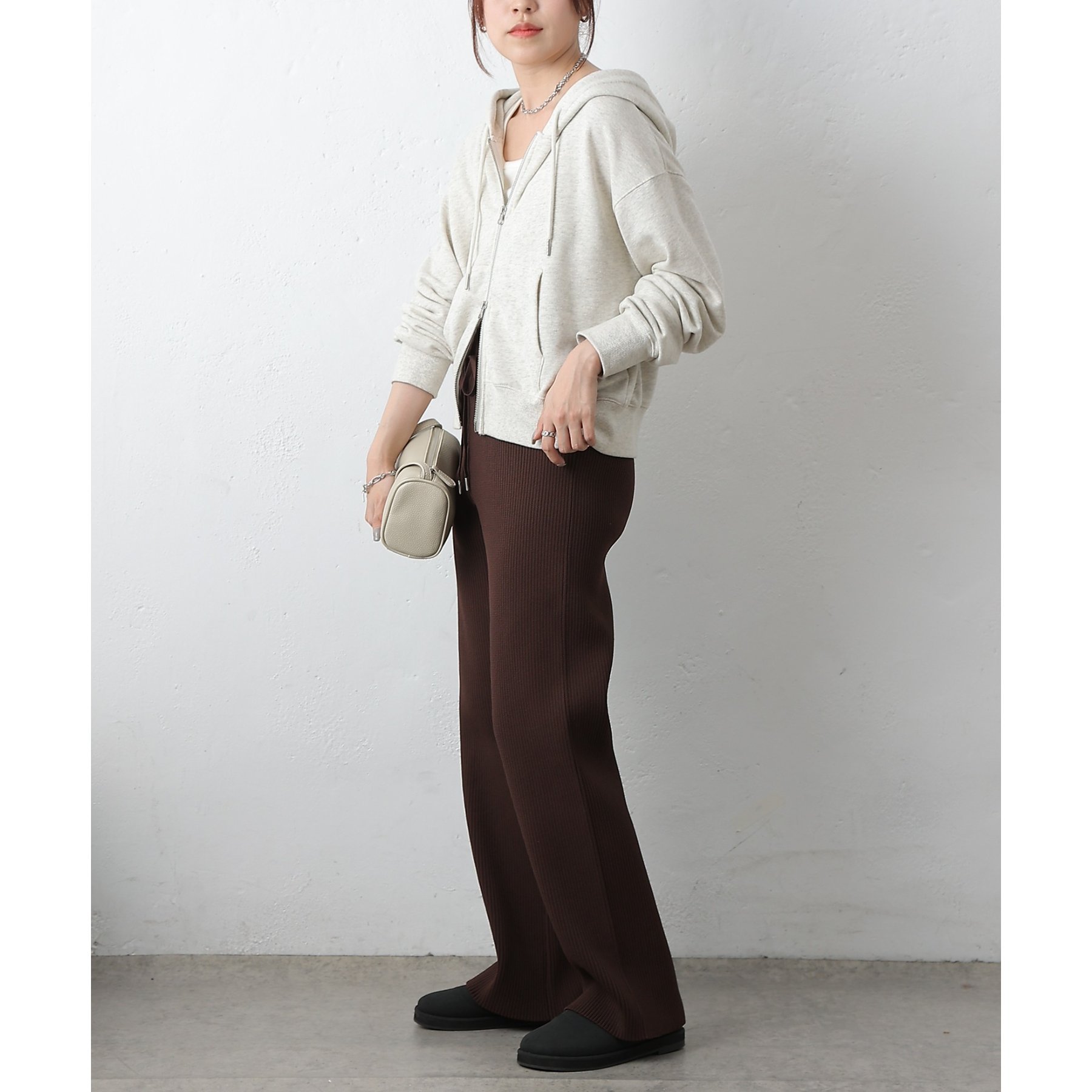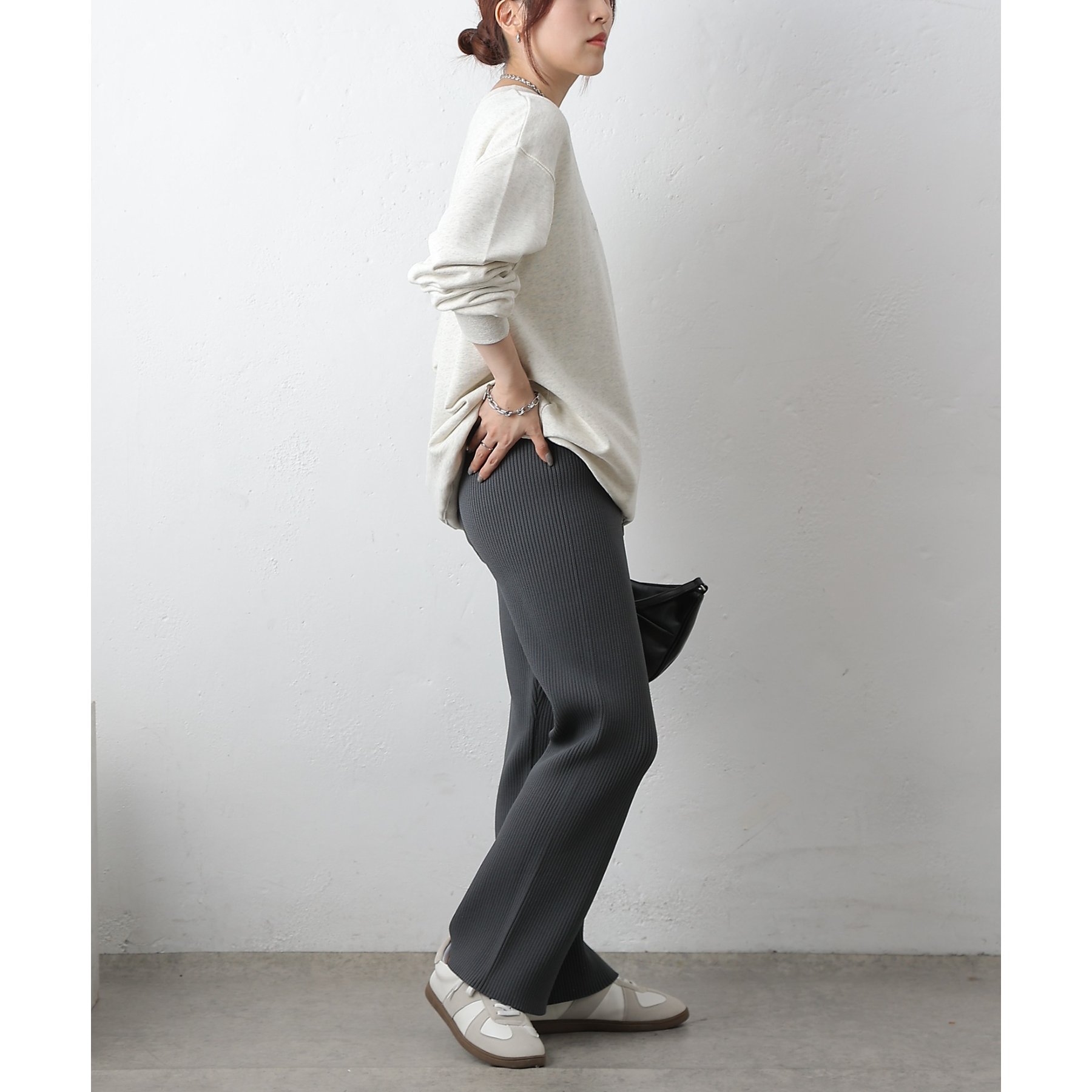 リブの縦ラインが、気になるレッグラインをすっきりと見せてくれるのも嬉しいポイント◎カジュアルになりすぎず、大人の女性らしい上品な印象を与えてくれます。シンプルなデザインなので、お手持ちのトップスと合わせやすく、コーディネートの幅が広がります。