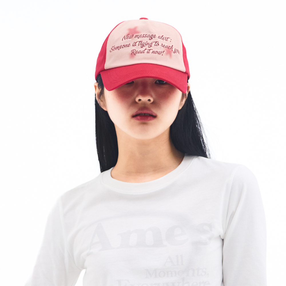 TWO TONE LETTERING BALL CAP RED