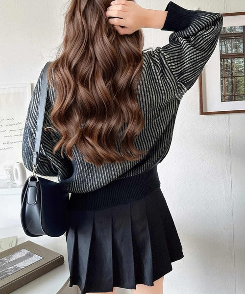 畦編みで、ストライプ見えするデザインに仕上げたニットプルオーバー。