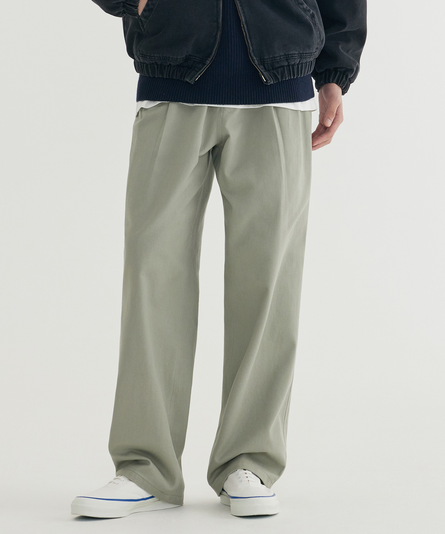 TWILL 2-TUCK STRING PANTS - Khaki