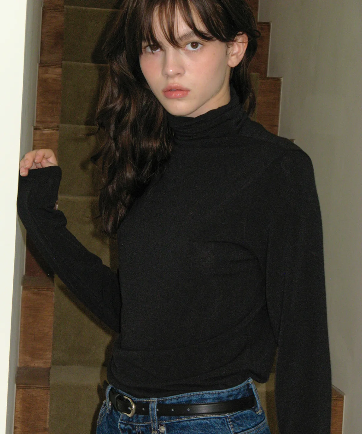 turtleneck logo top - black