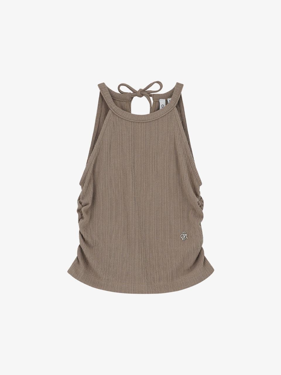 (CTH2) Ribbed Halterneck Sleeveless Top-BEIGE