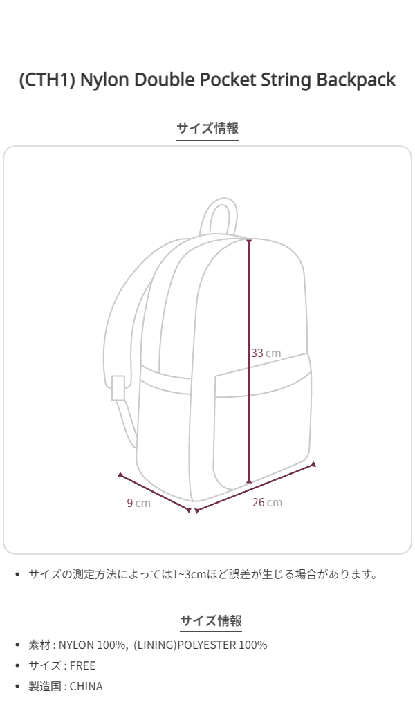 (CTH1) Nylon Double Pocket String Backpack-BLACK