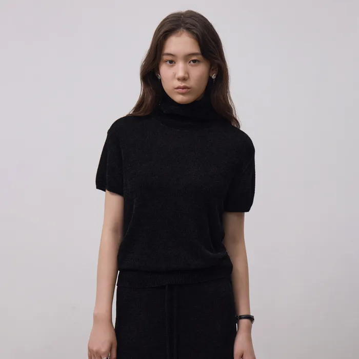 首元を自然に包み込むハイネックデザインは、端正で洗練されたシルエットを描きつつ、一枚で着用してもスタイリングのポイントになります。ショルダーラインに沿ってなめらかにつながるキャップスリーブディテールは、腕を過度に露出させることなく、自然でフェミニンなムードを強調し、気負わずエレガントな印象に仕上げてくれます。