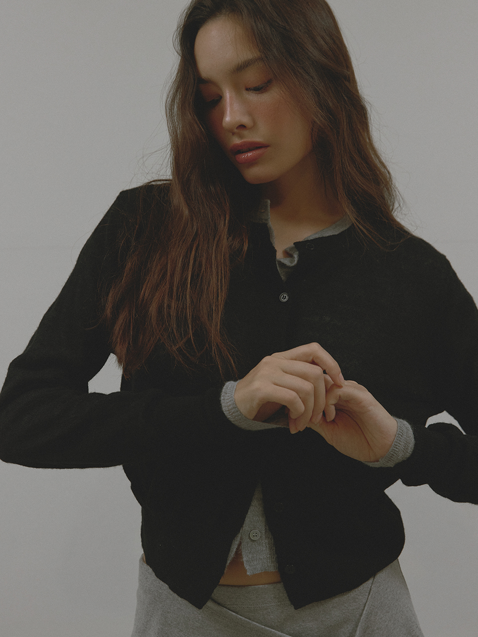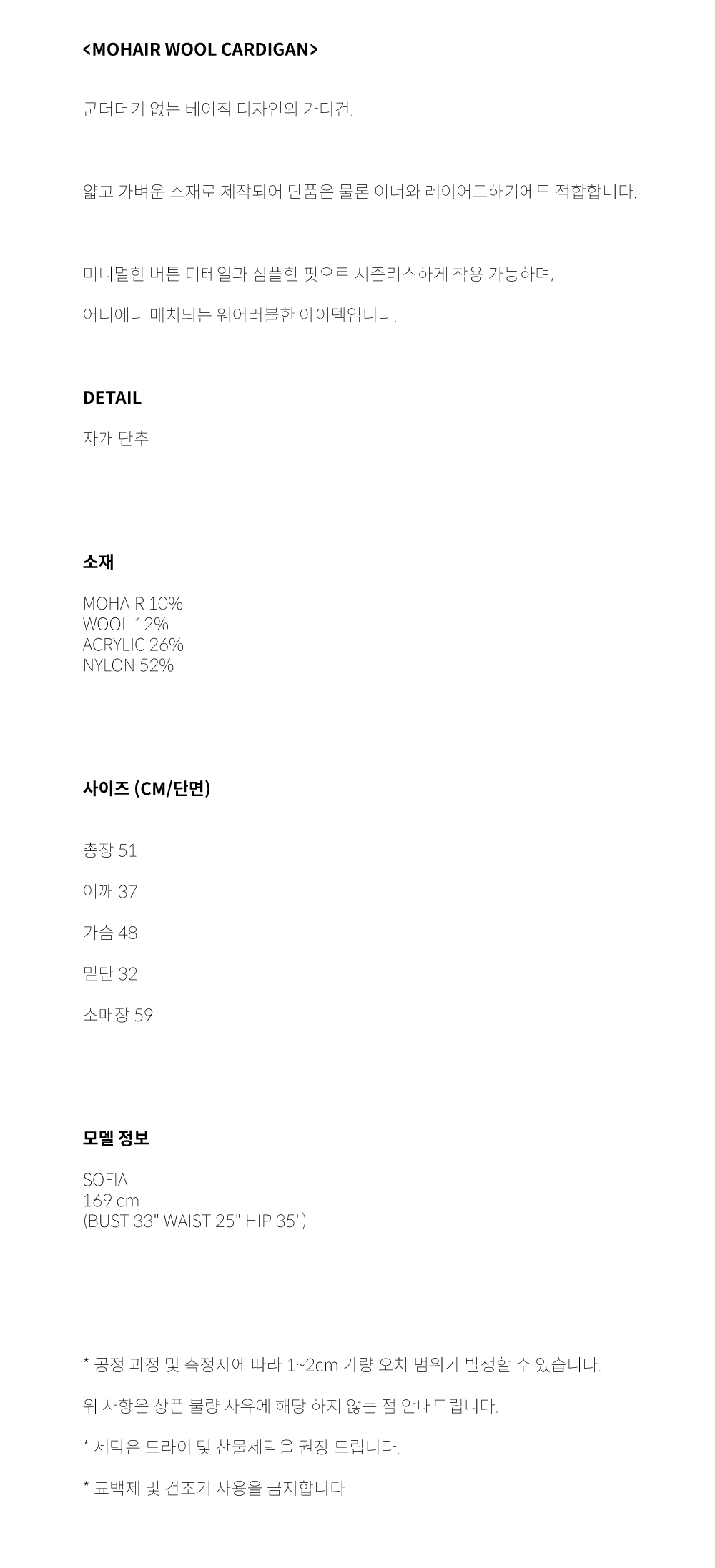 MOHAIR WOOL CARDIGAN (BLACK)