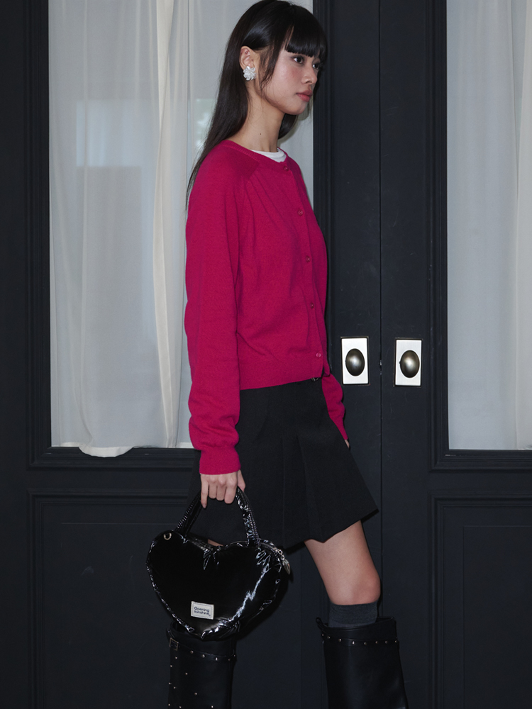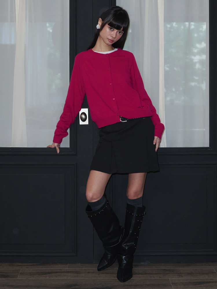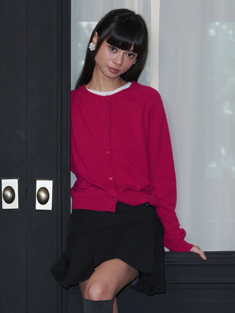 Round Neck Merino Wool Cardigan_Magenta Pink