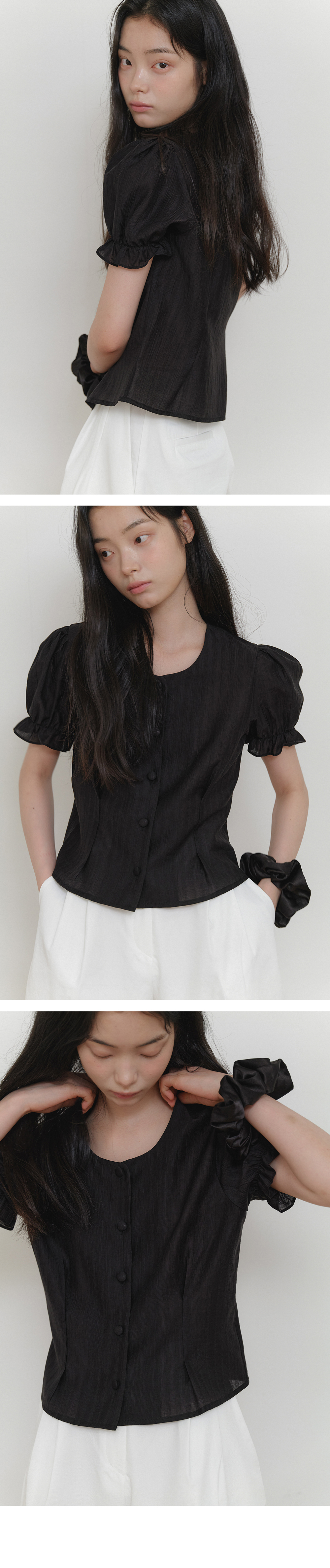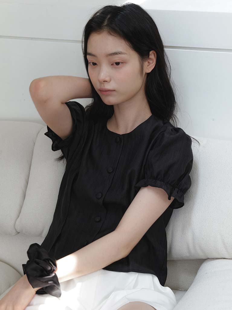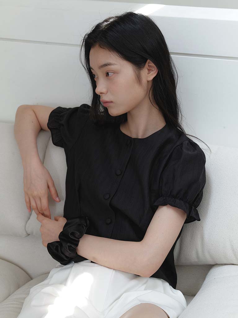 SOFT SHIRRING SHIRT_BLACK