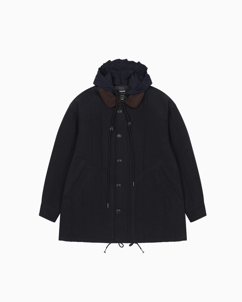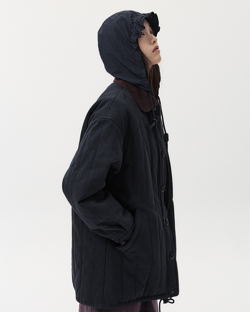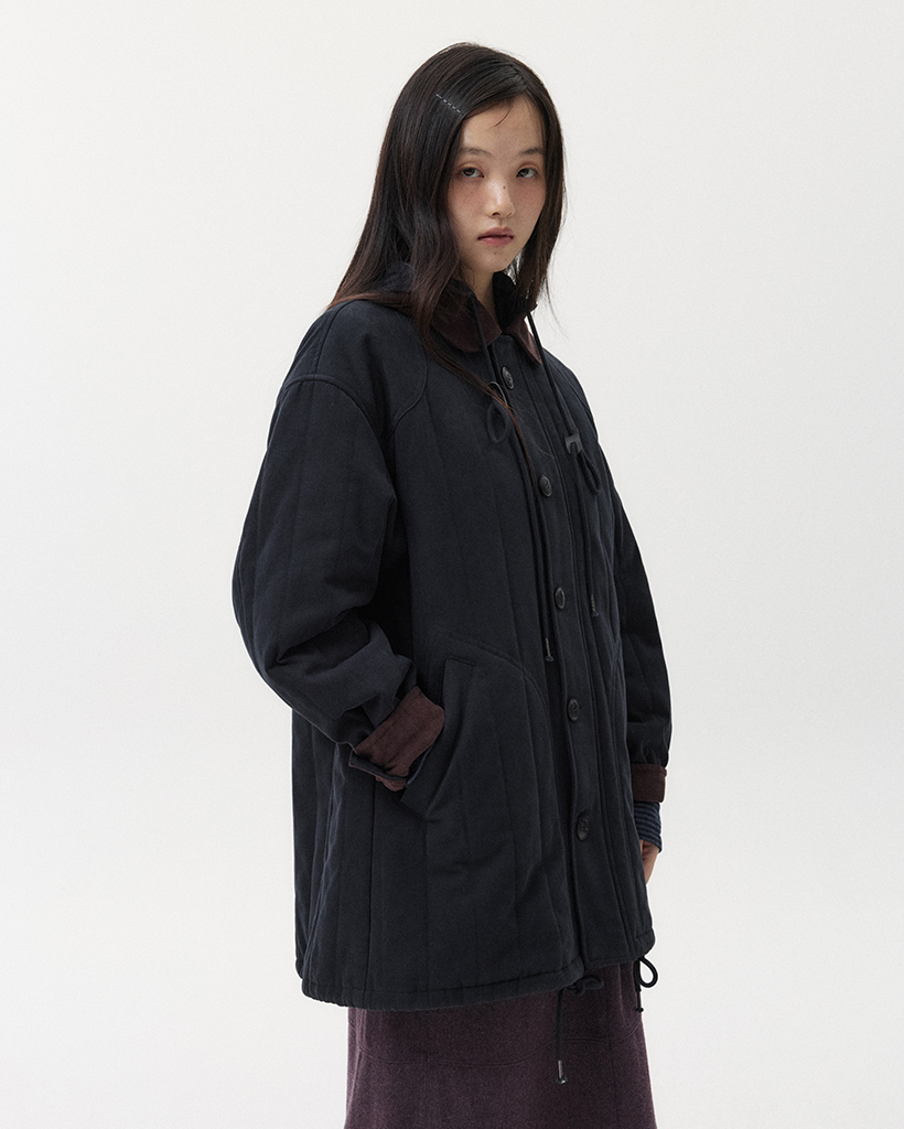 CORDUROY COLLAR QUILTED JACKET, NAVY