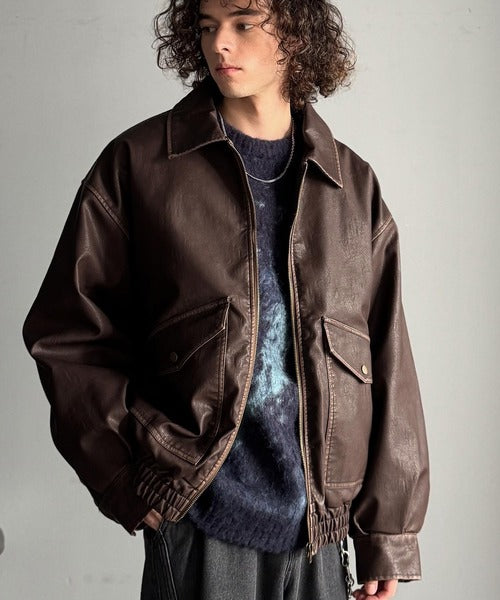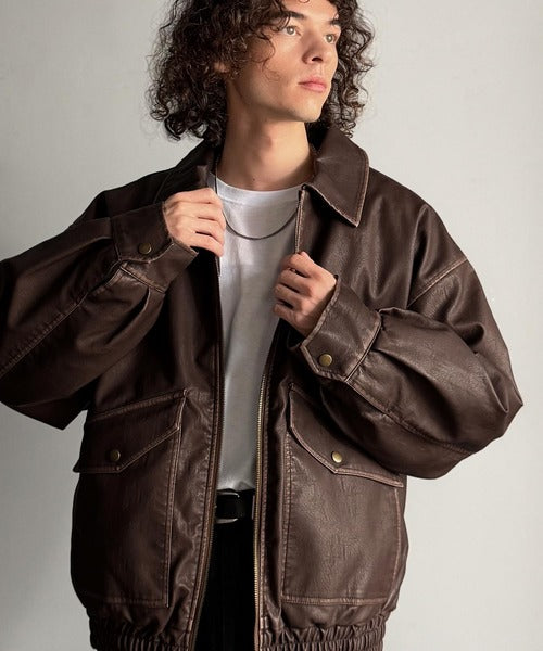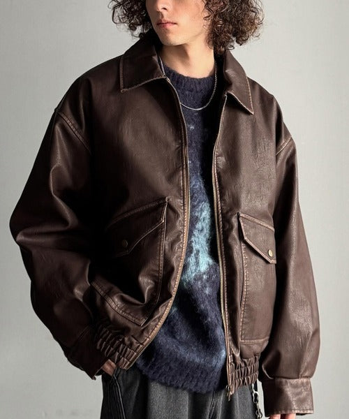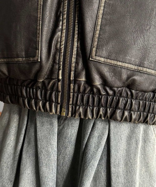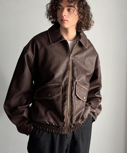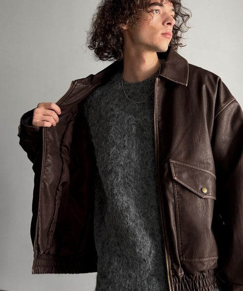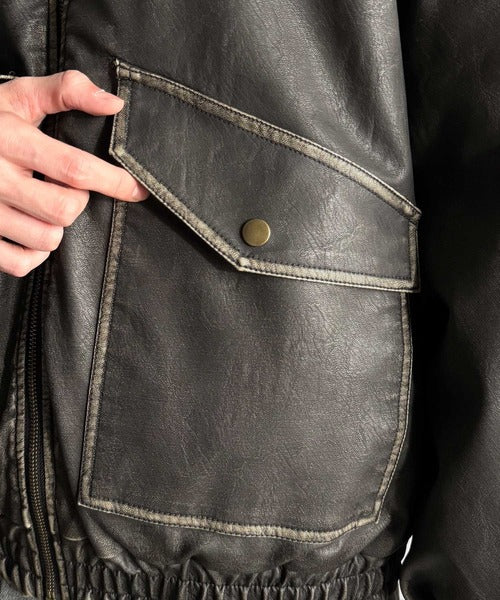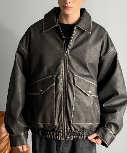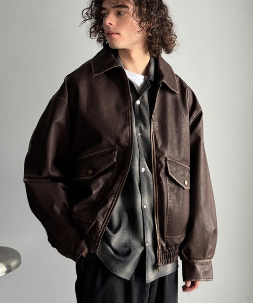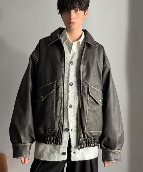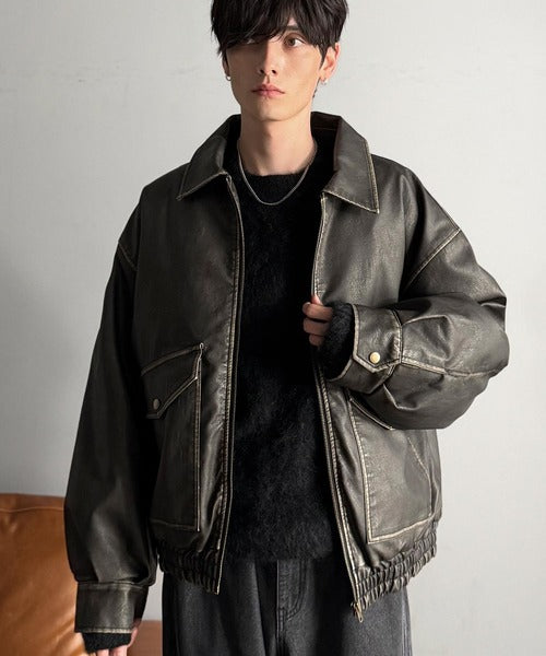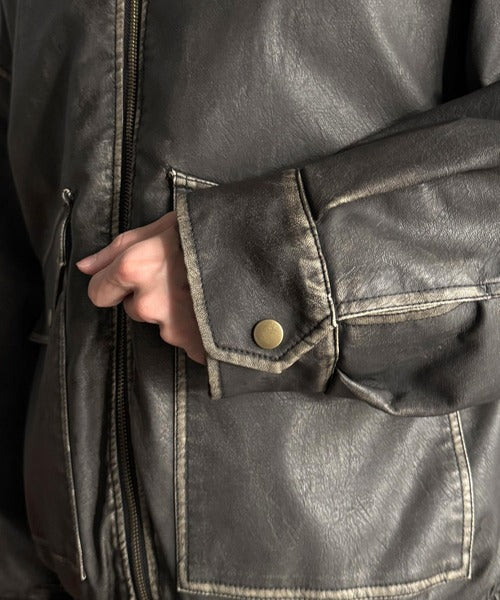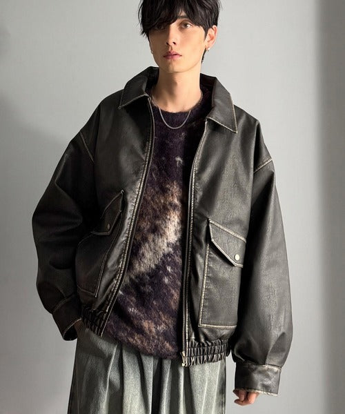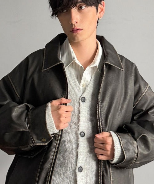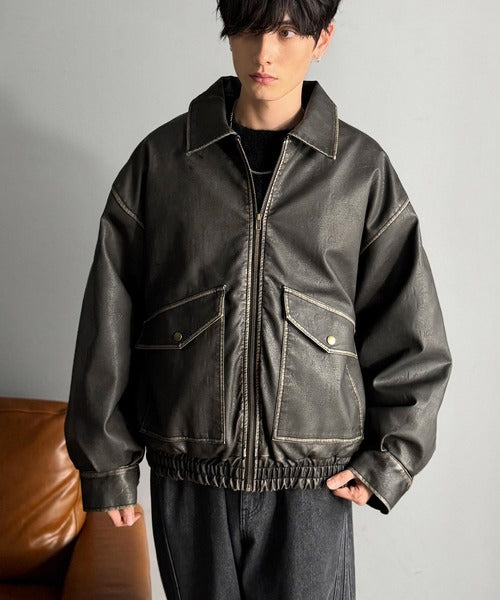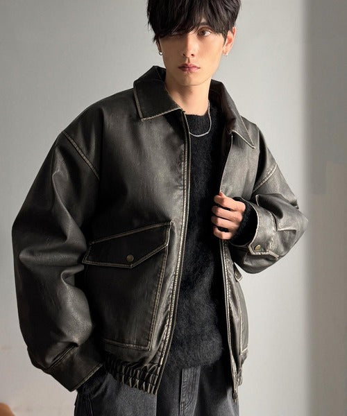 全体に施されたリアルなダメージ加工が魅力のフェイクレザーアウター。
