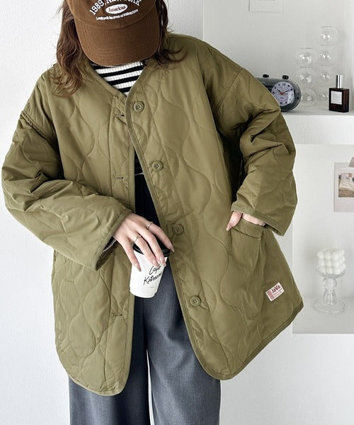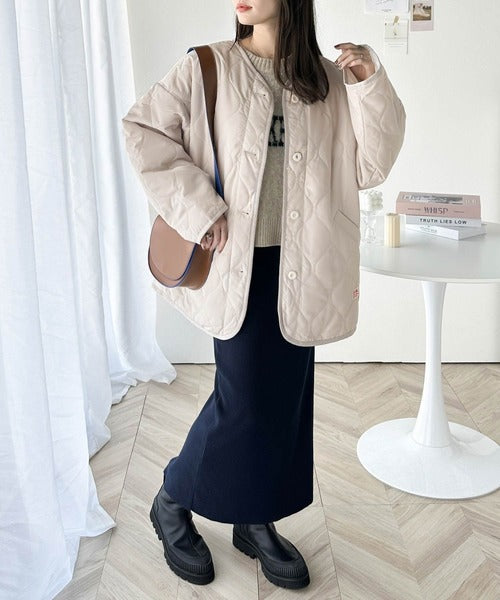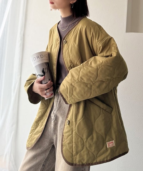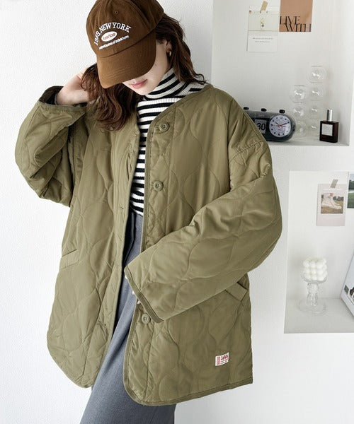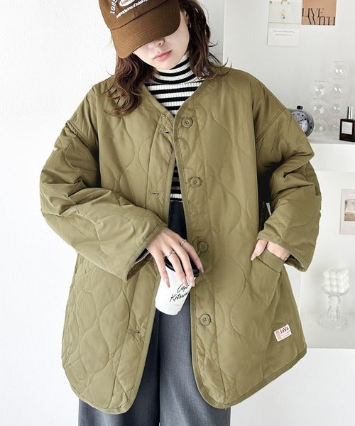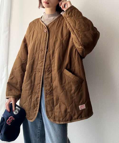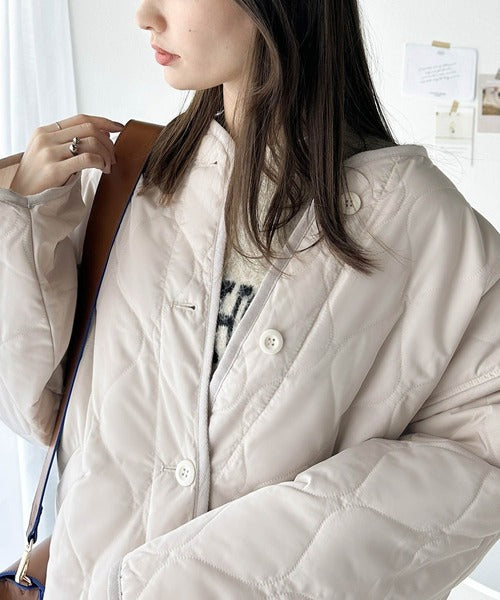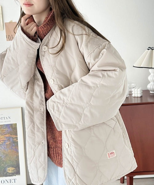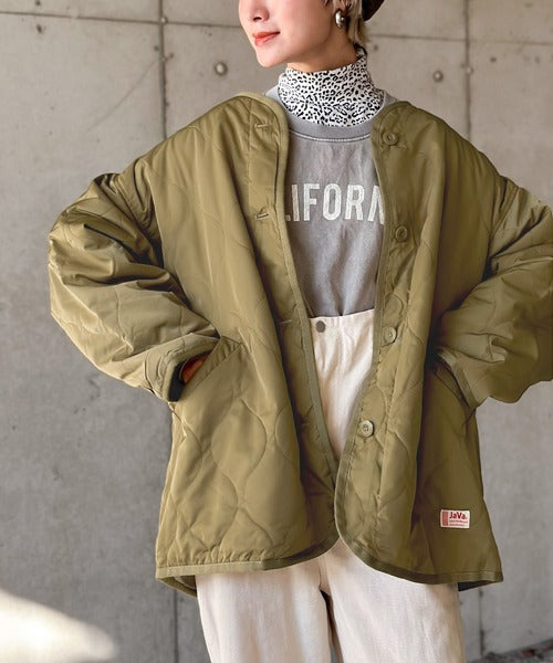 《JaVaジャバ コラボ》大人のこなれ感。ノーカラーキルティングコート clf014