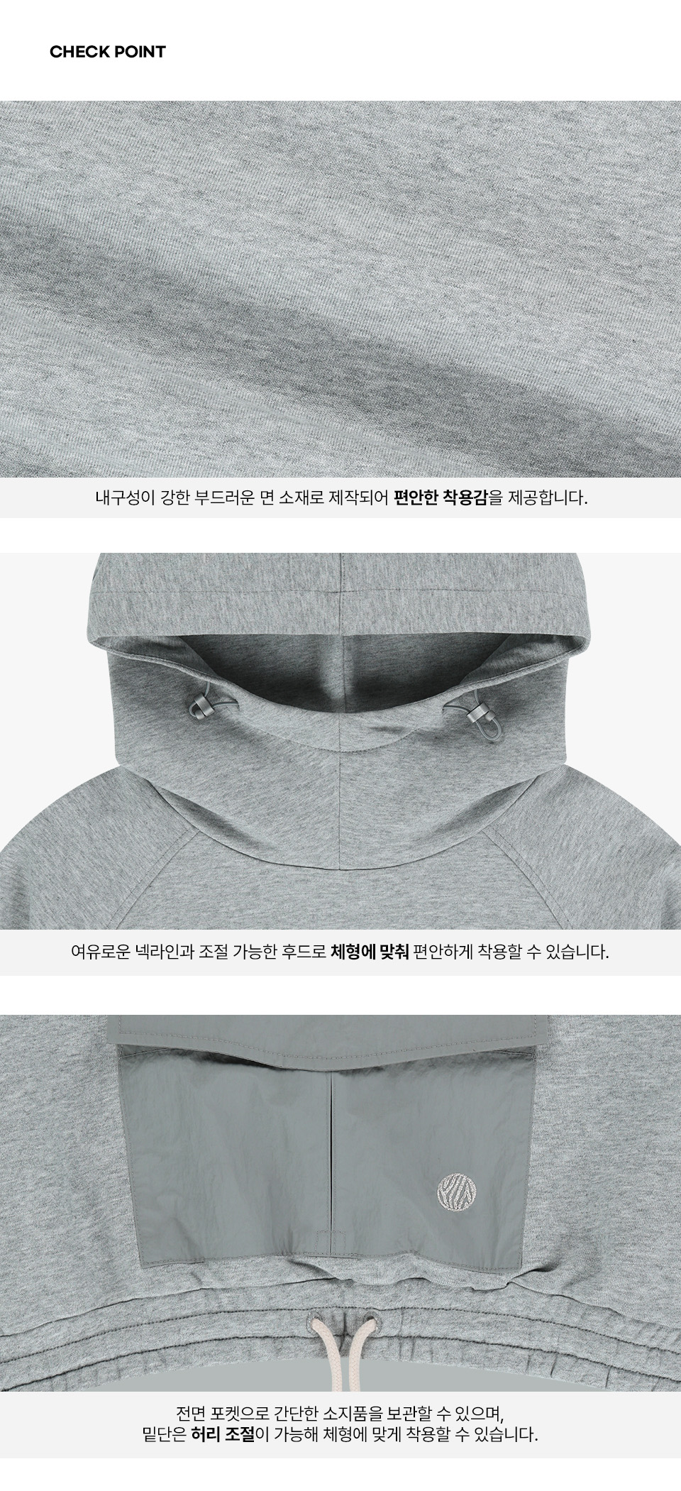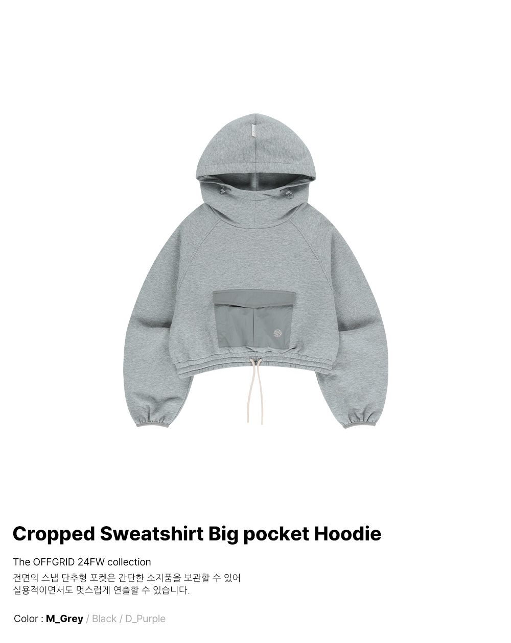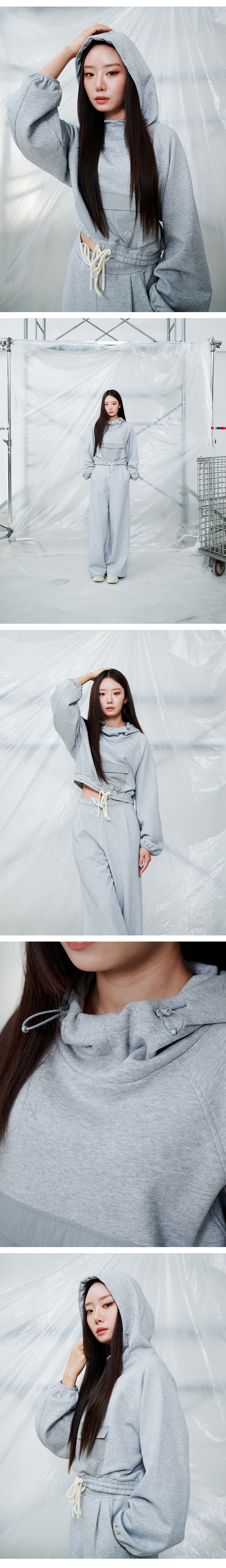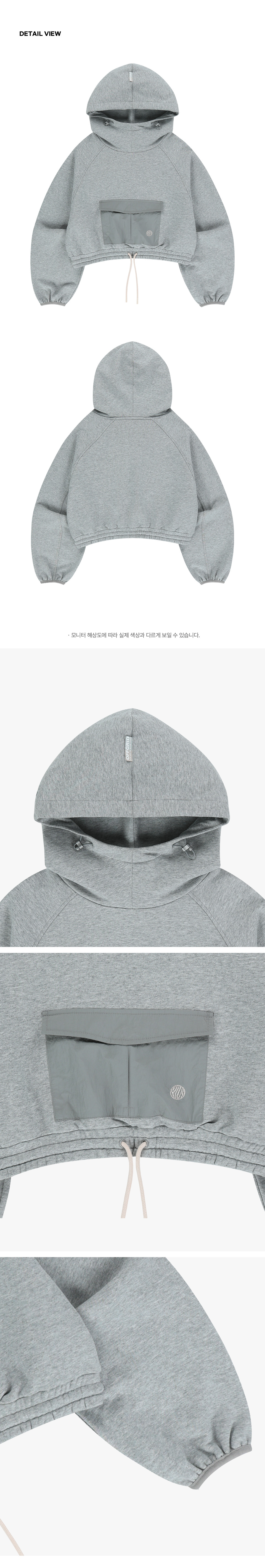 クロップスウェットビッグポケットフードティー - メランジグレー