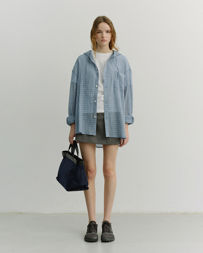 UNISEX CLASSIC HOODED SHIRT SOFT BLUE CHECK_UDSH6A107B1