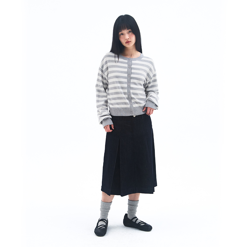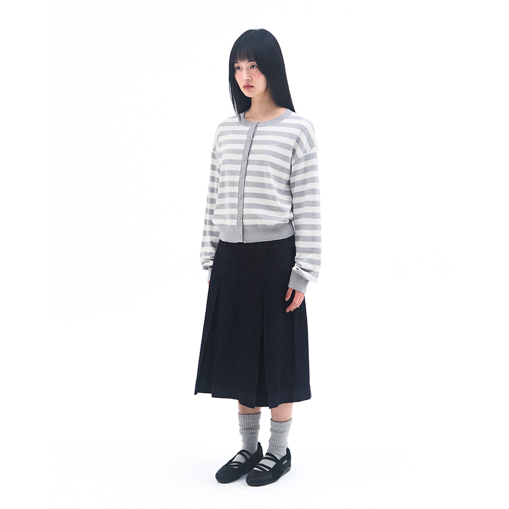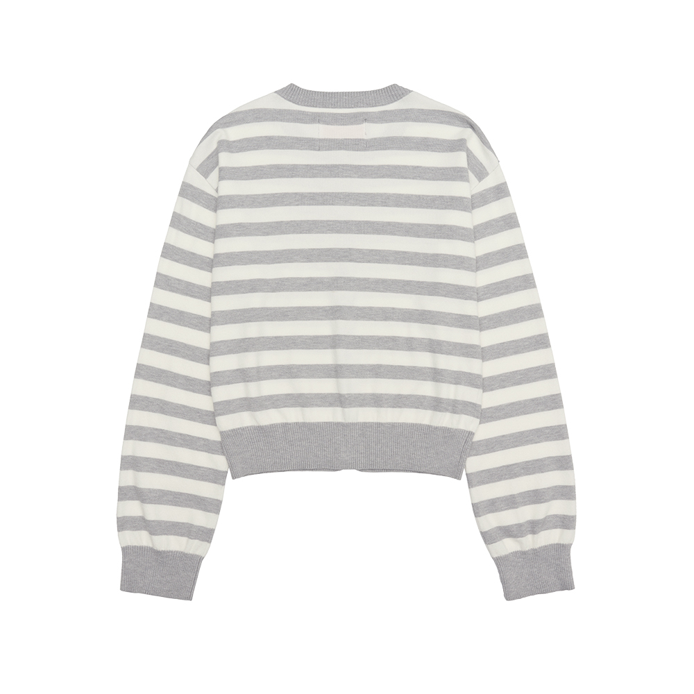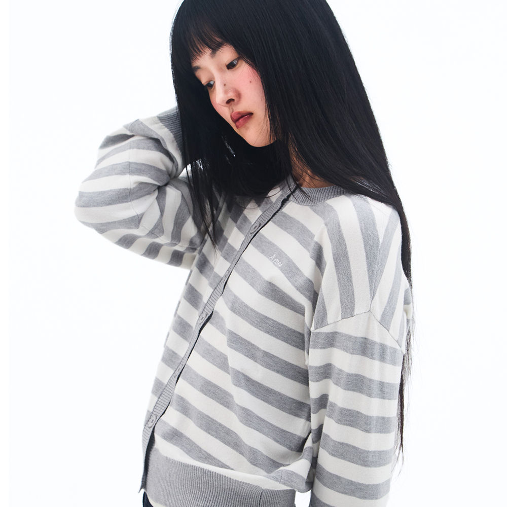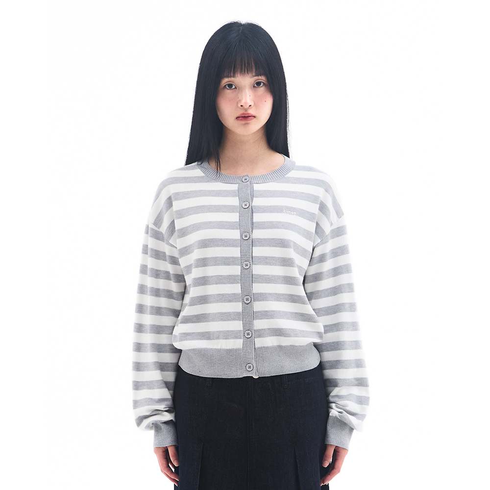 STRIPE ROUND NECK CARDIGAN GREY
