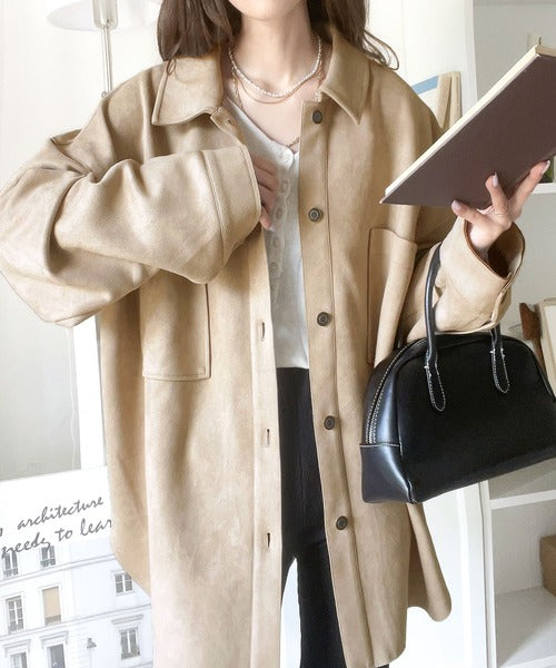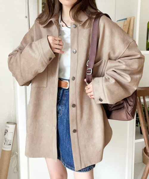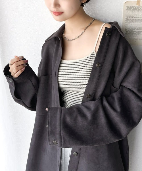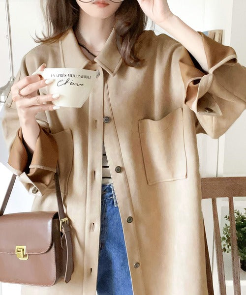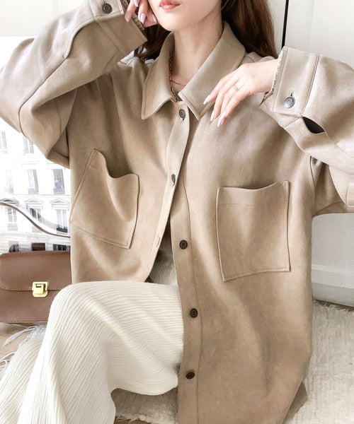 滑らかフェイクスエード素材の上質シャツジャケット ce1110044