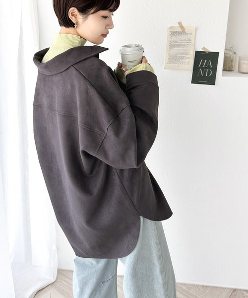 滑らかでしっとりとしたフェイクスエードのCPOジャケットを、あらゆるアイテムに合わせやすいオーバーサイズに仕上げました。