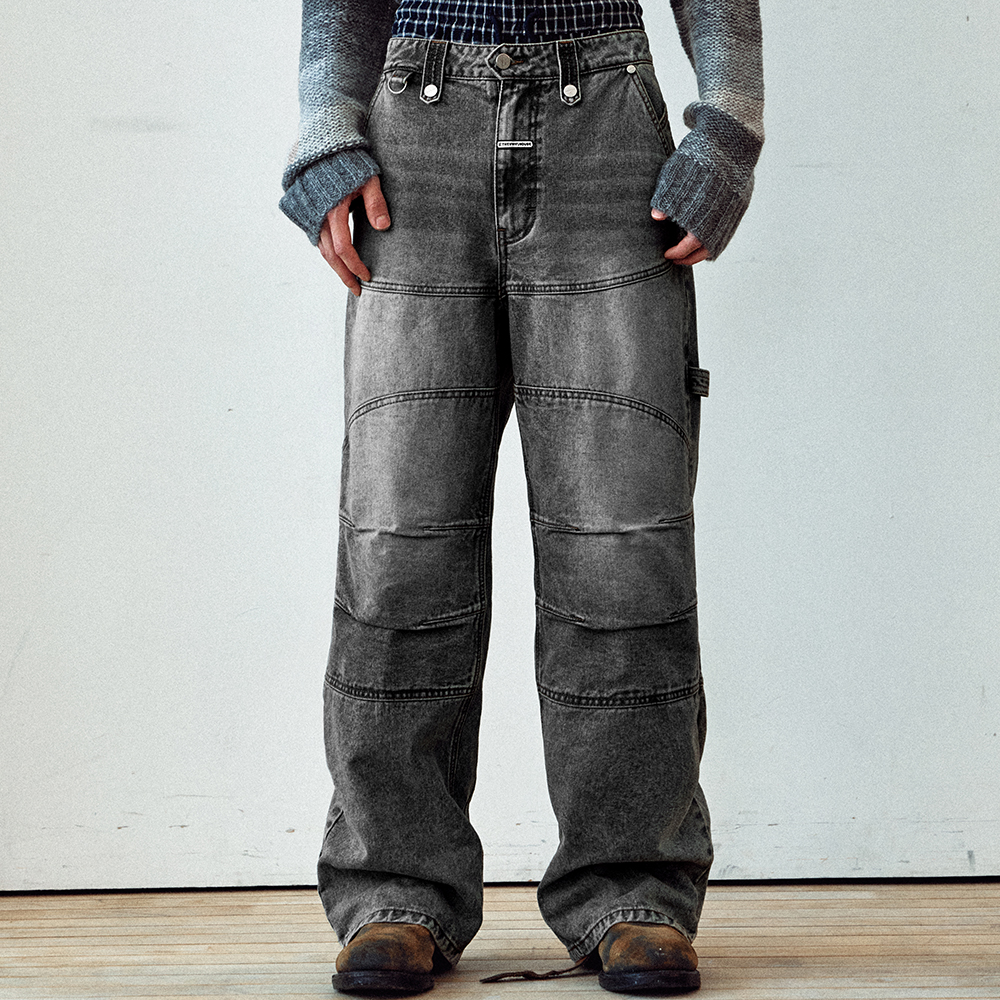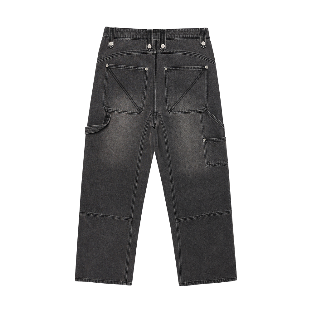 ROUND DOUBLE KNEE DENIM PANTS BLACK