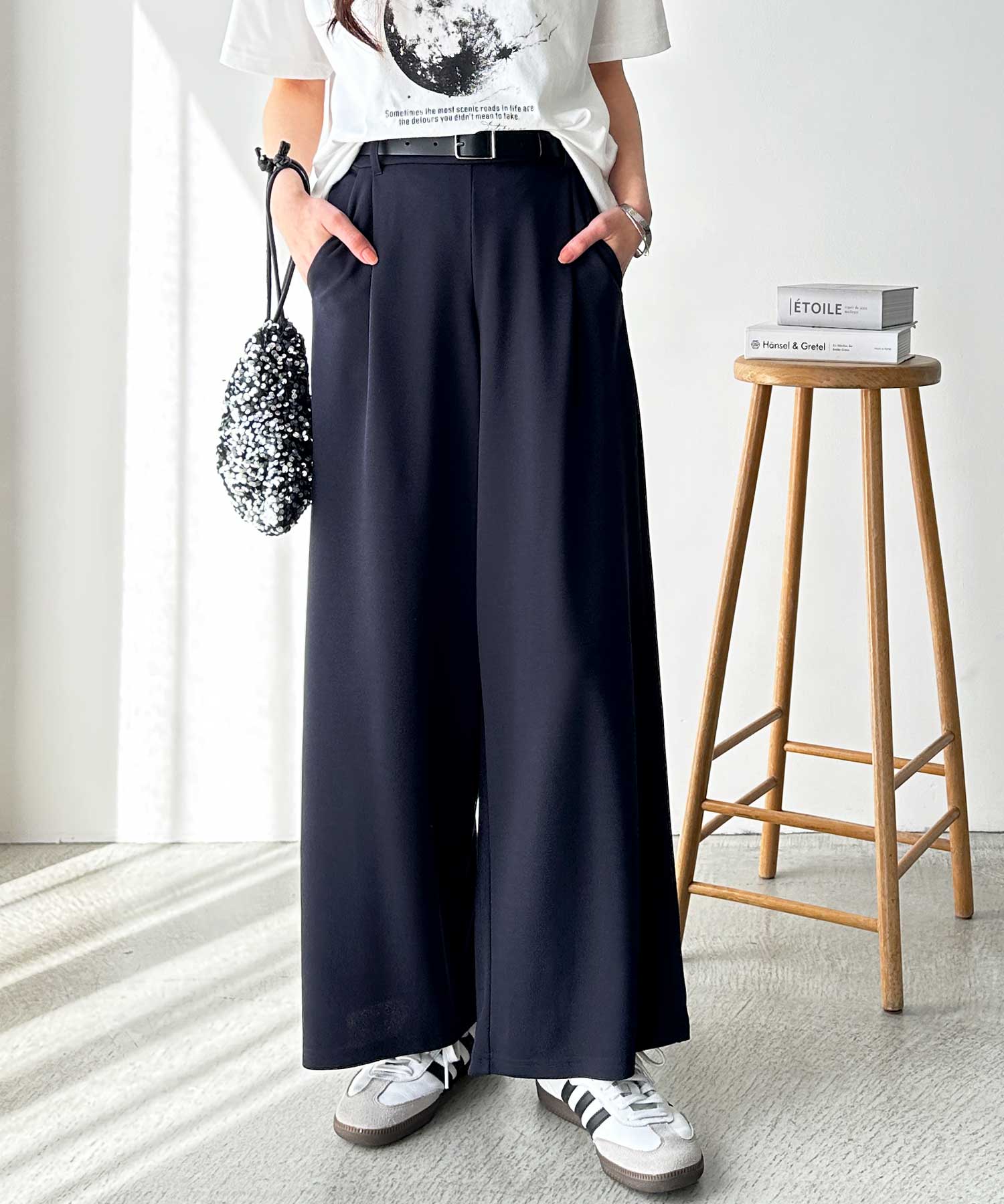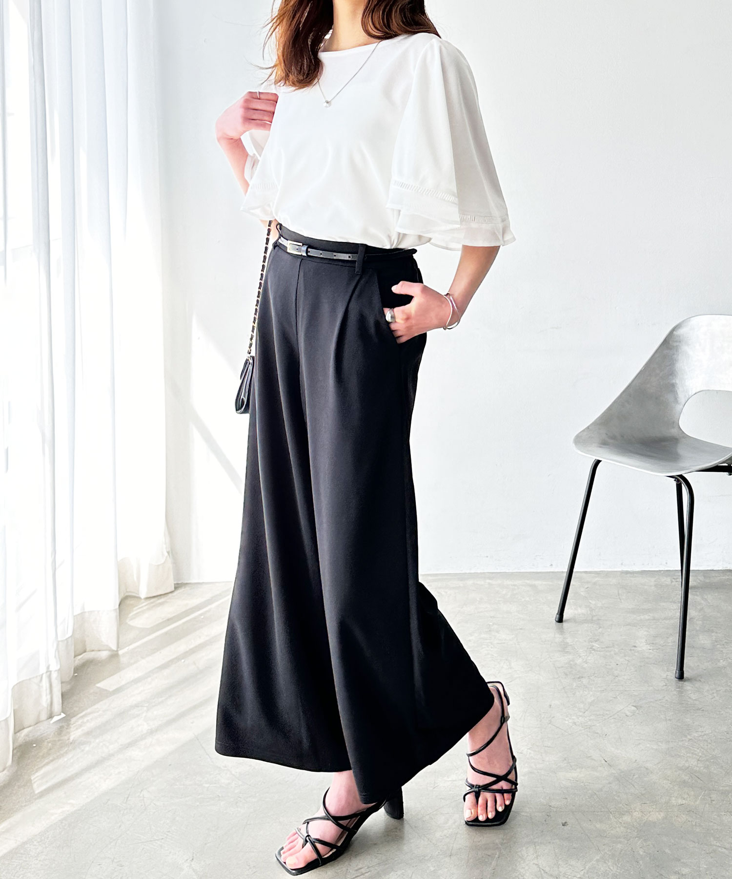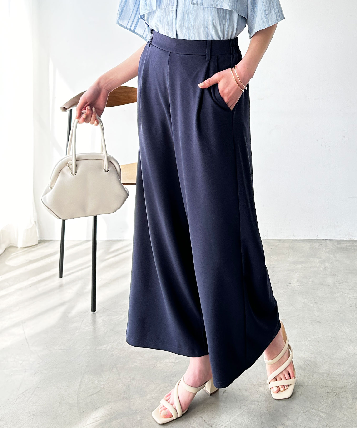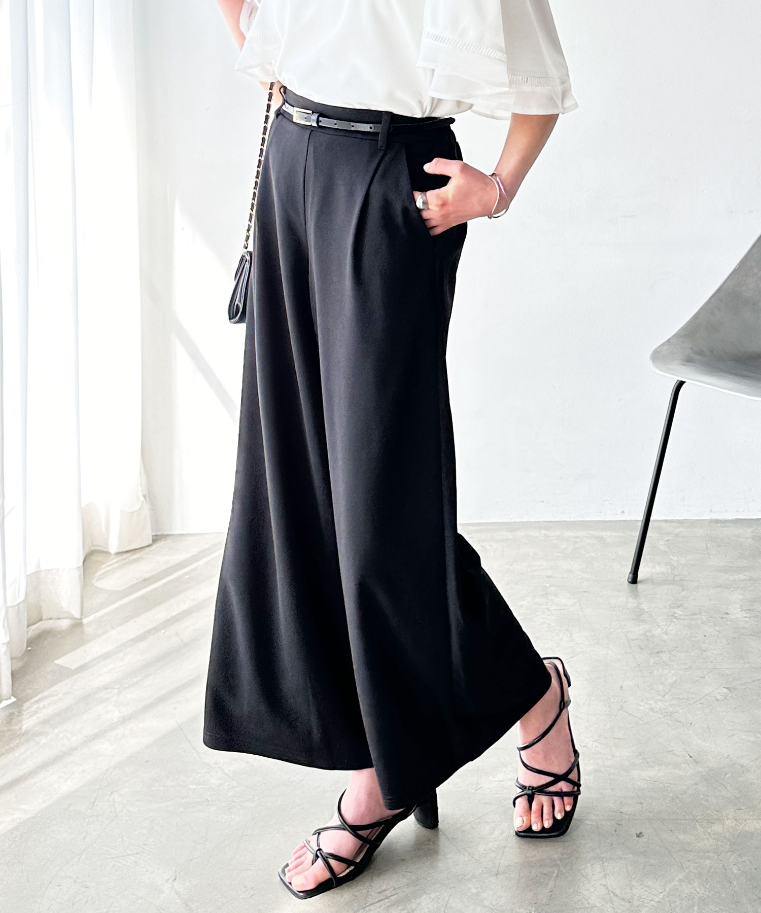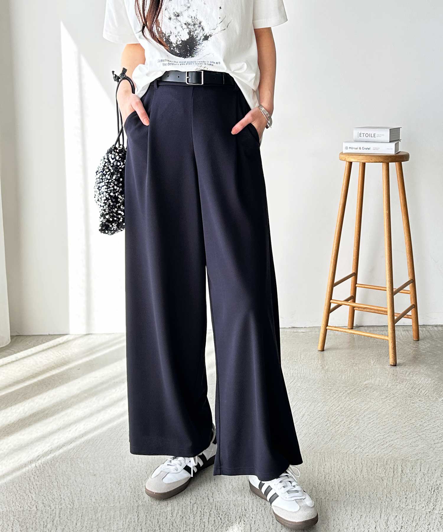 はくだけで美脚見えする美しいシルエットのワイドパンツ。