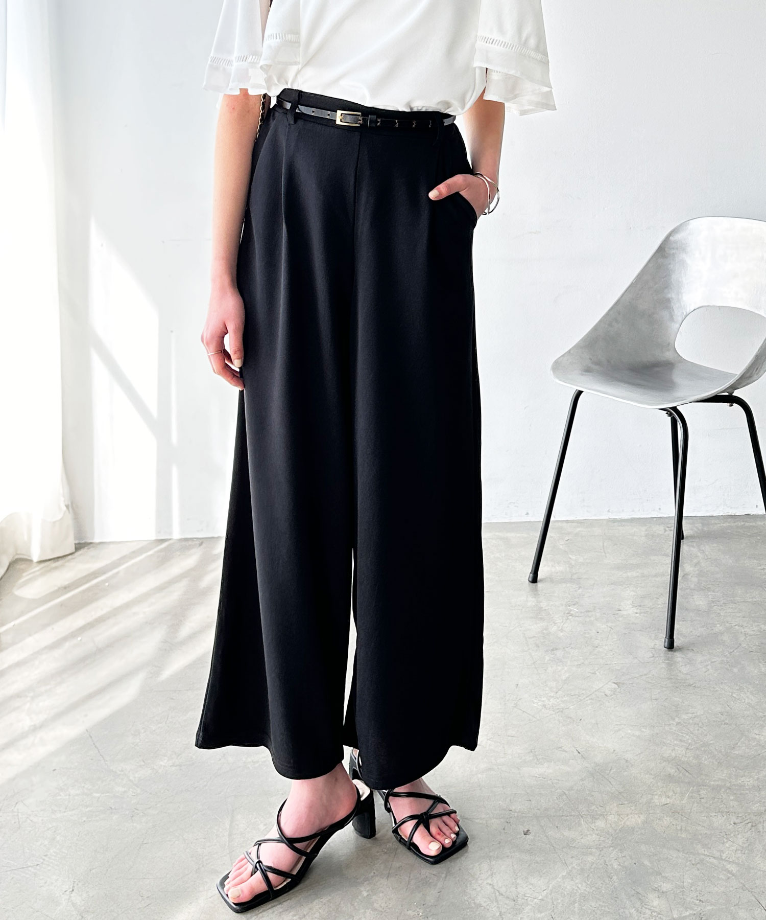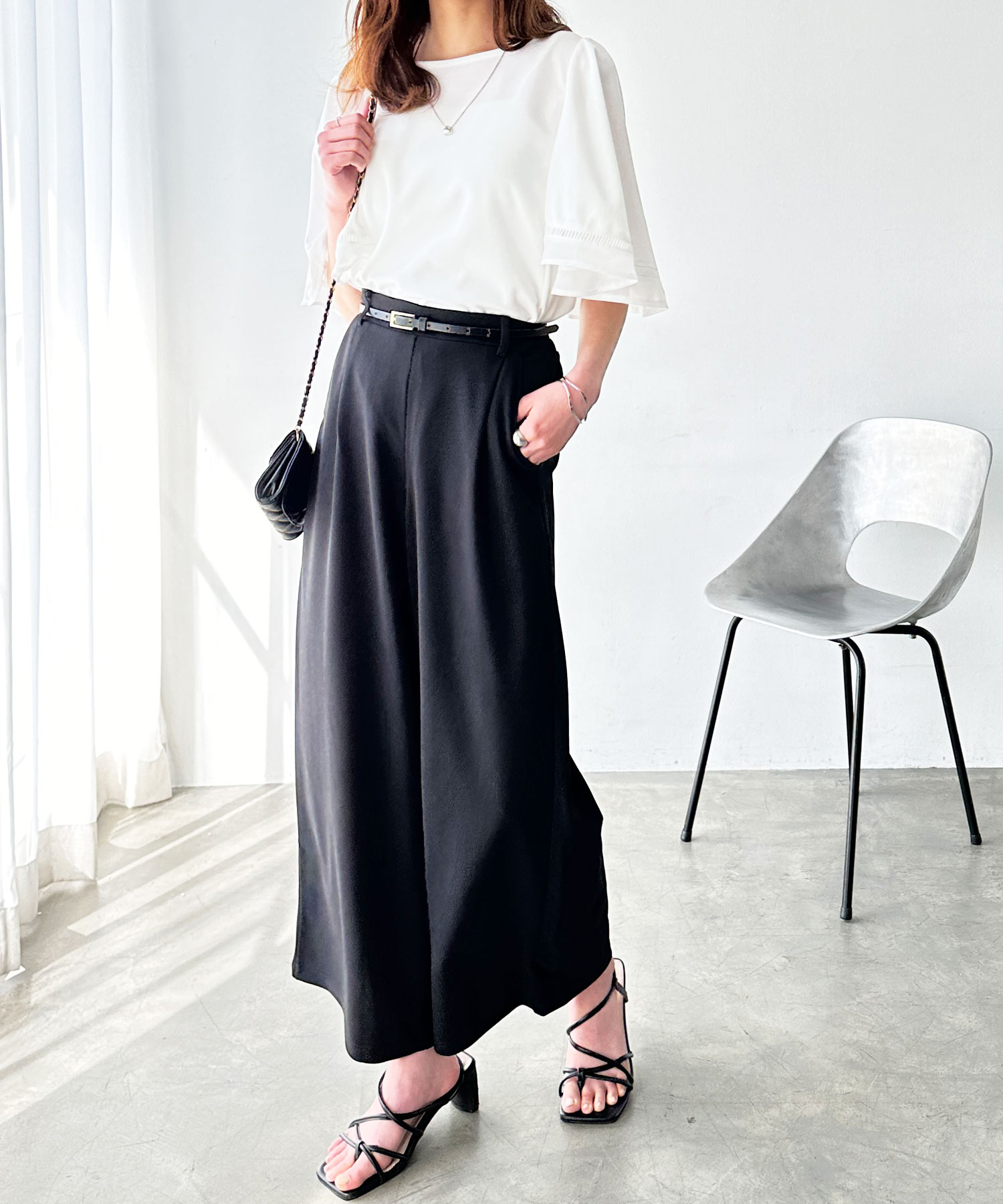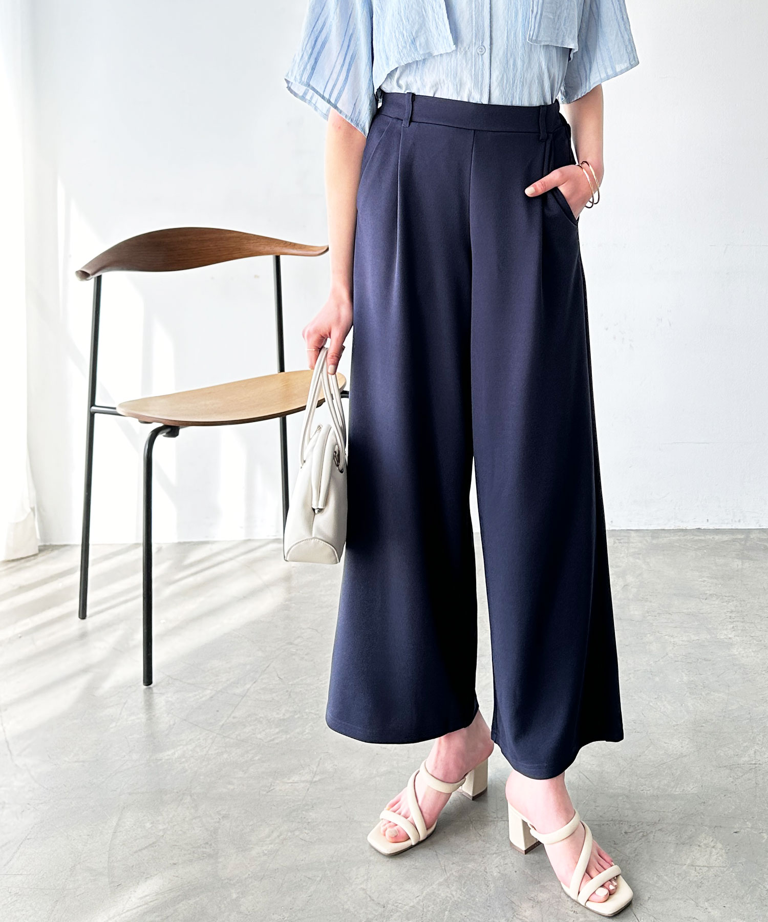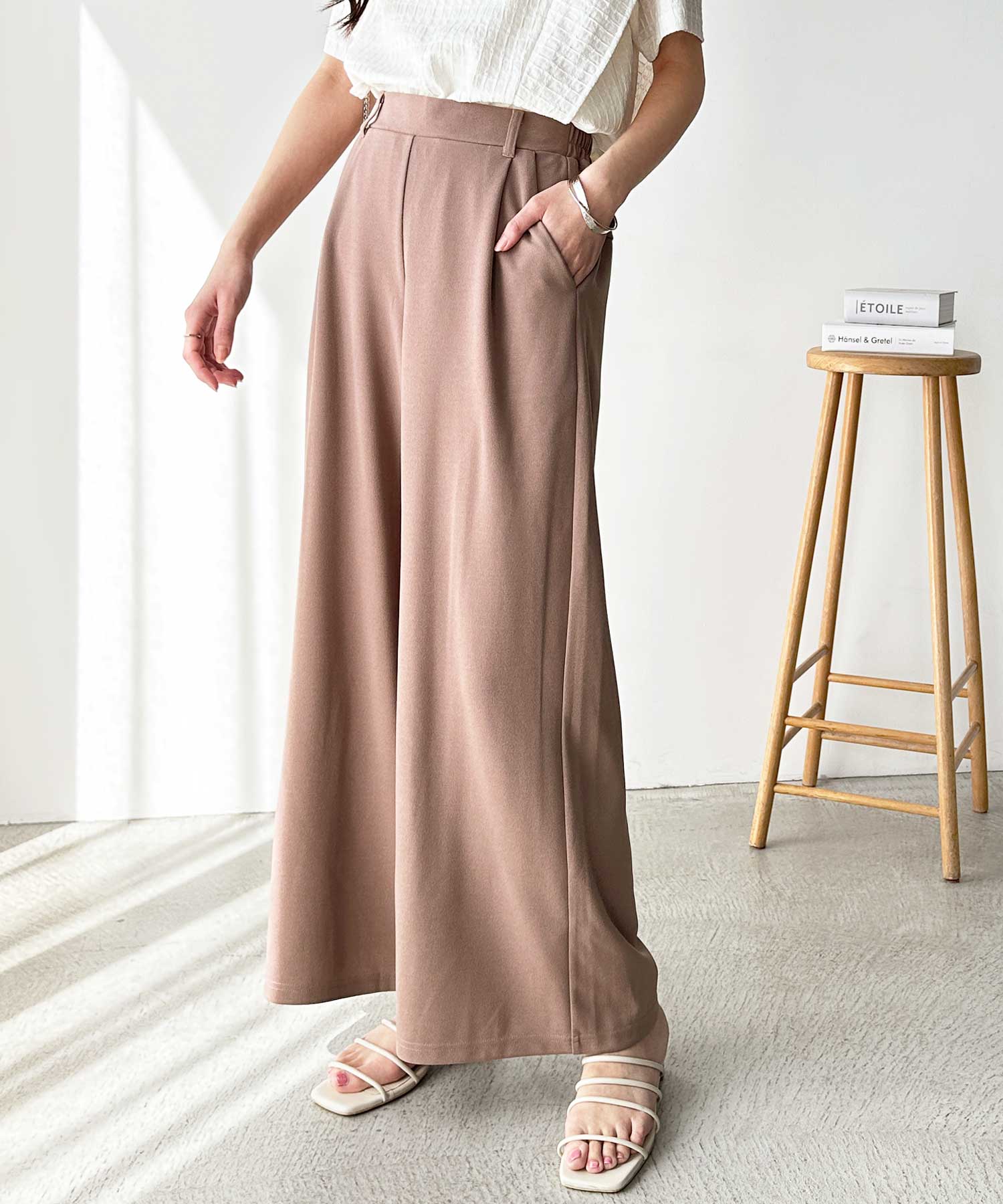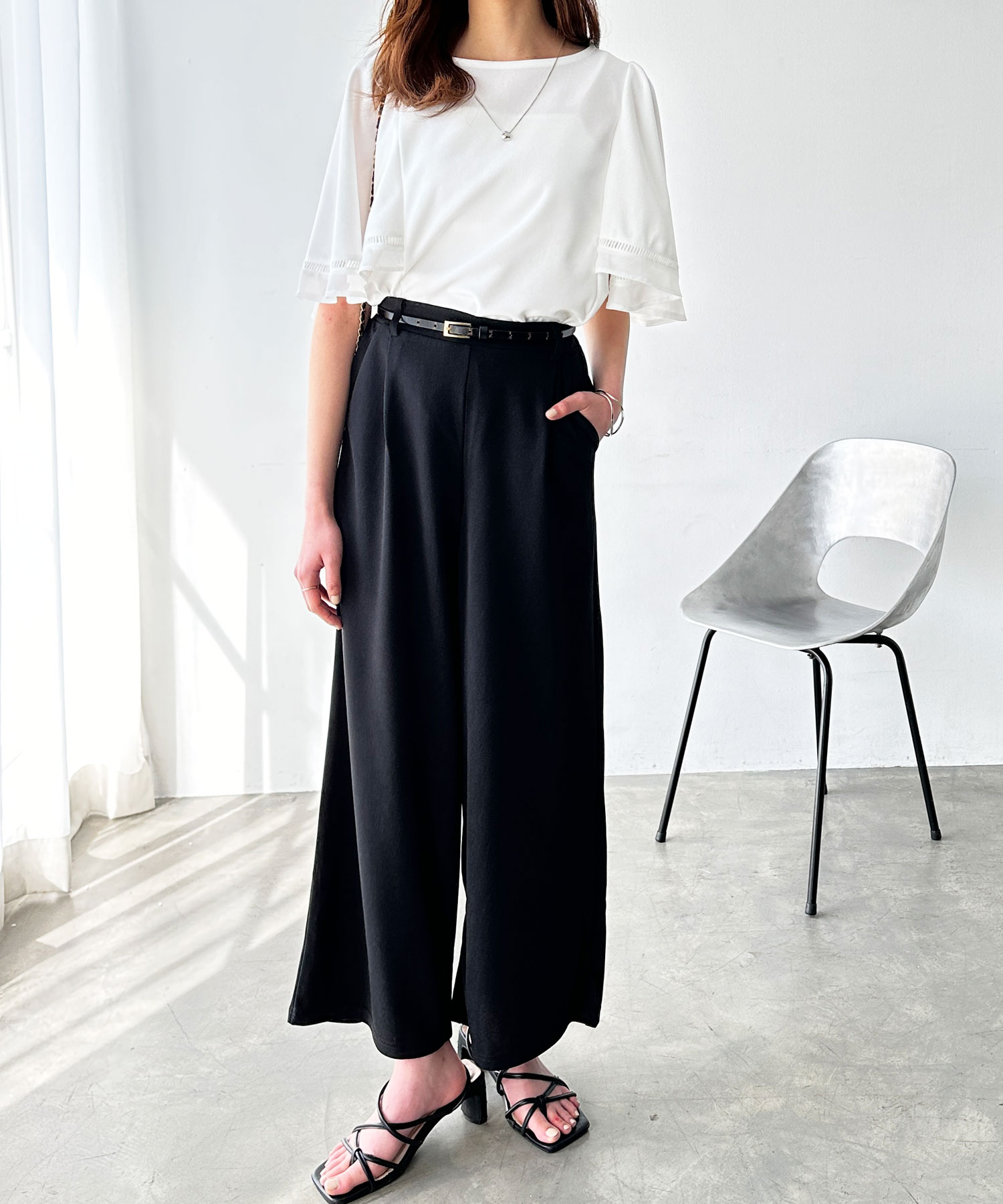 はくだけで美脚見えする美しいシルエットのワイドパンツ。