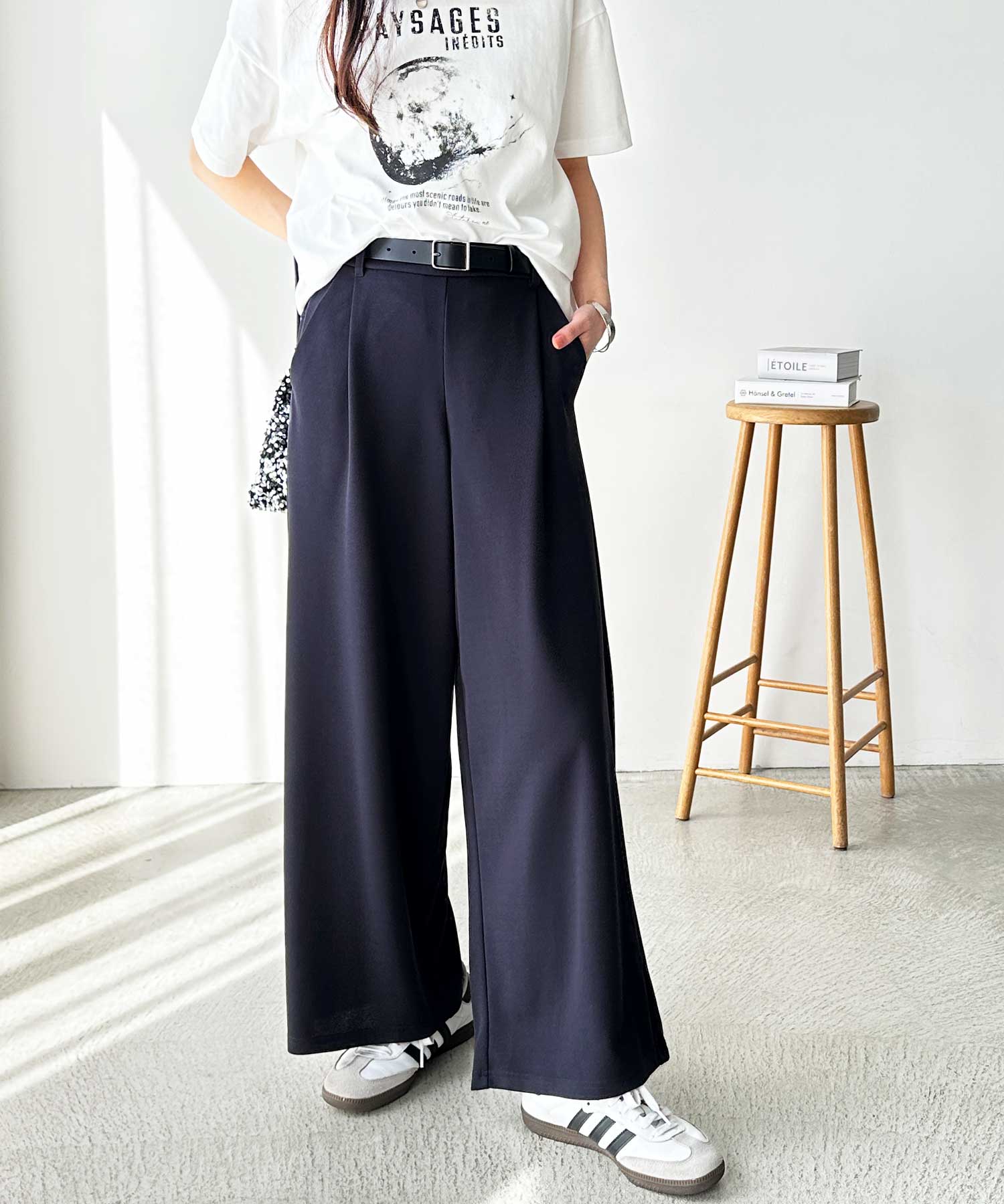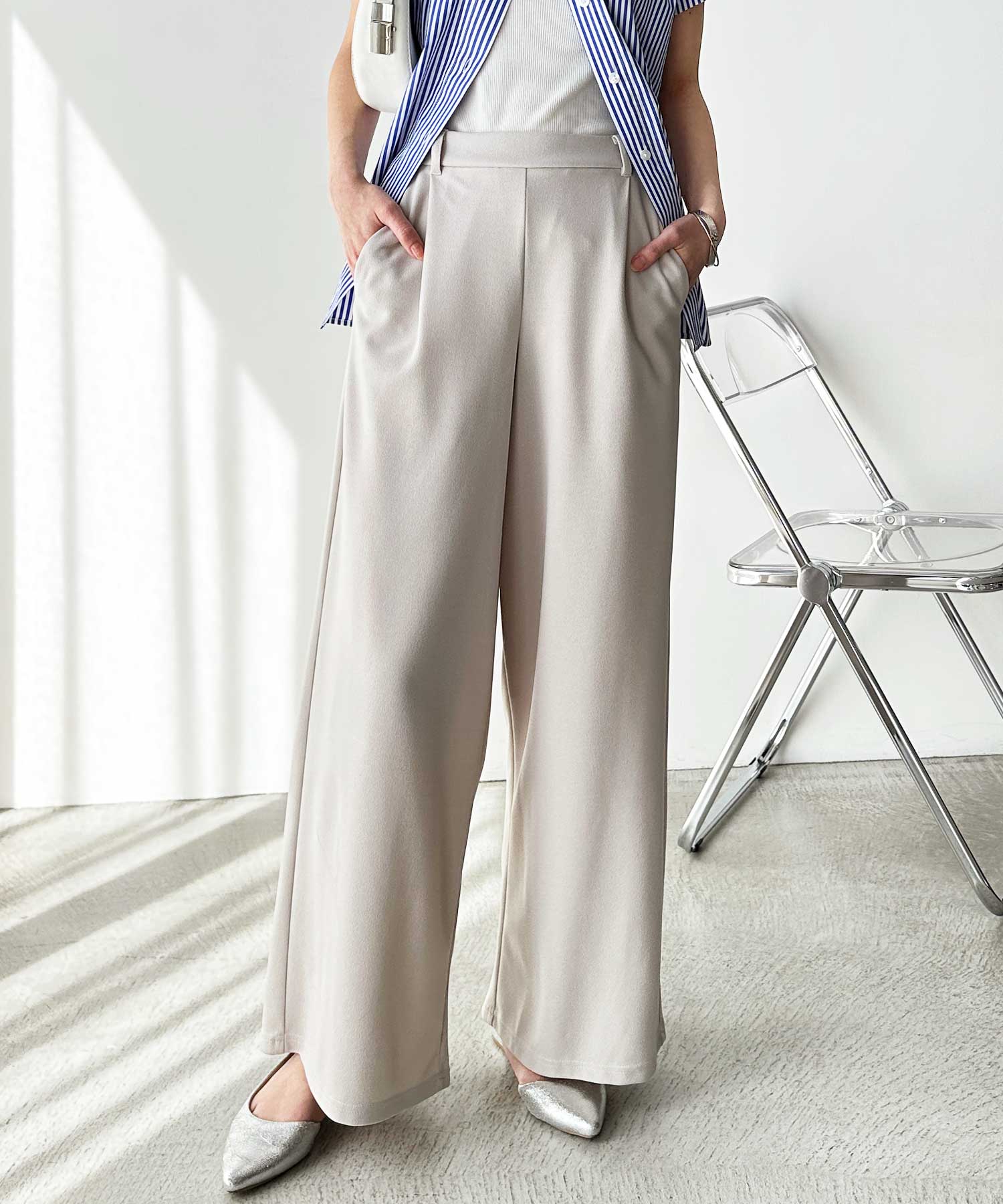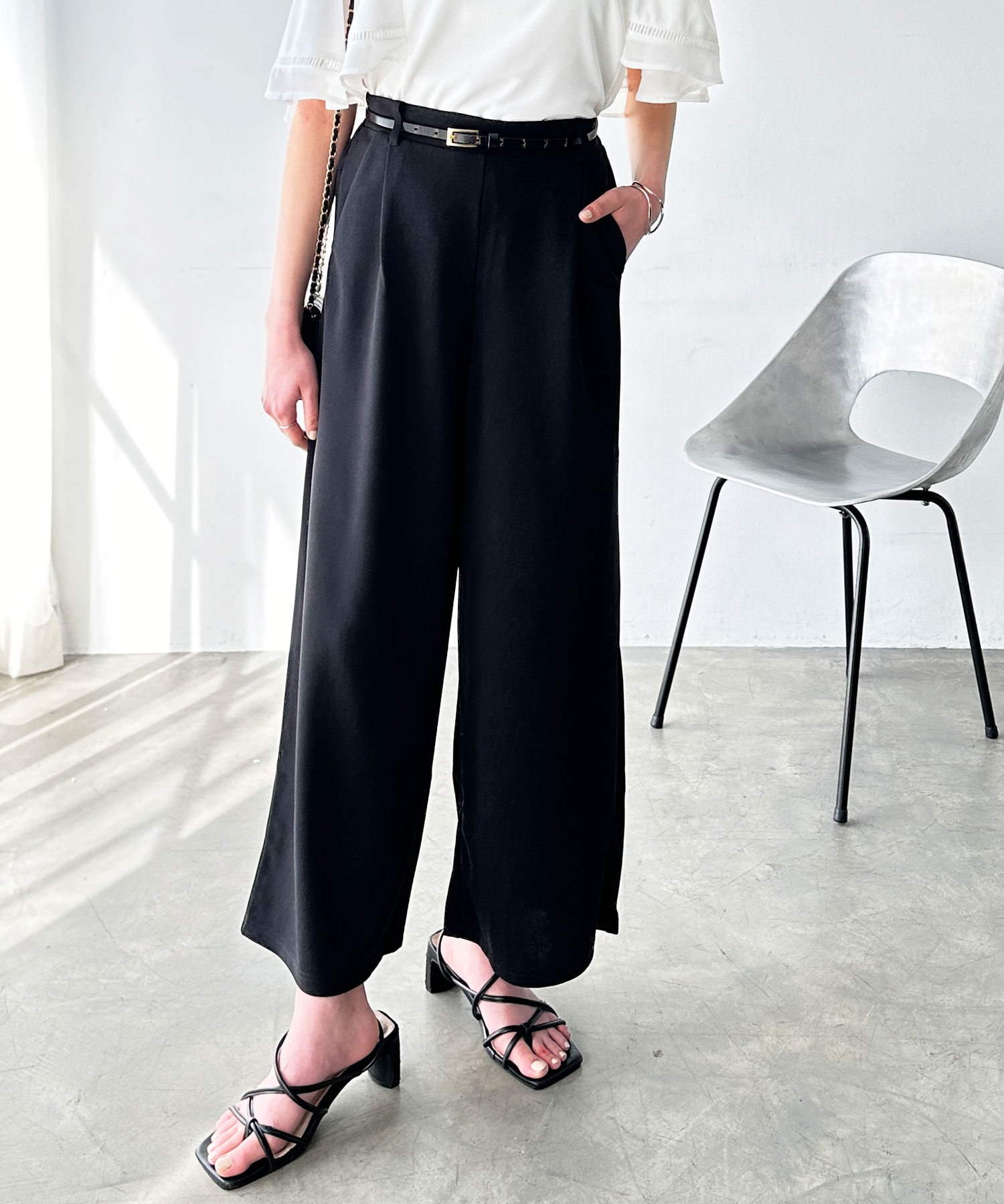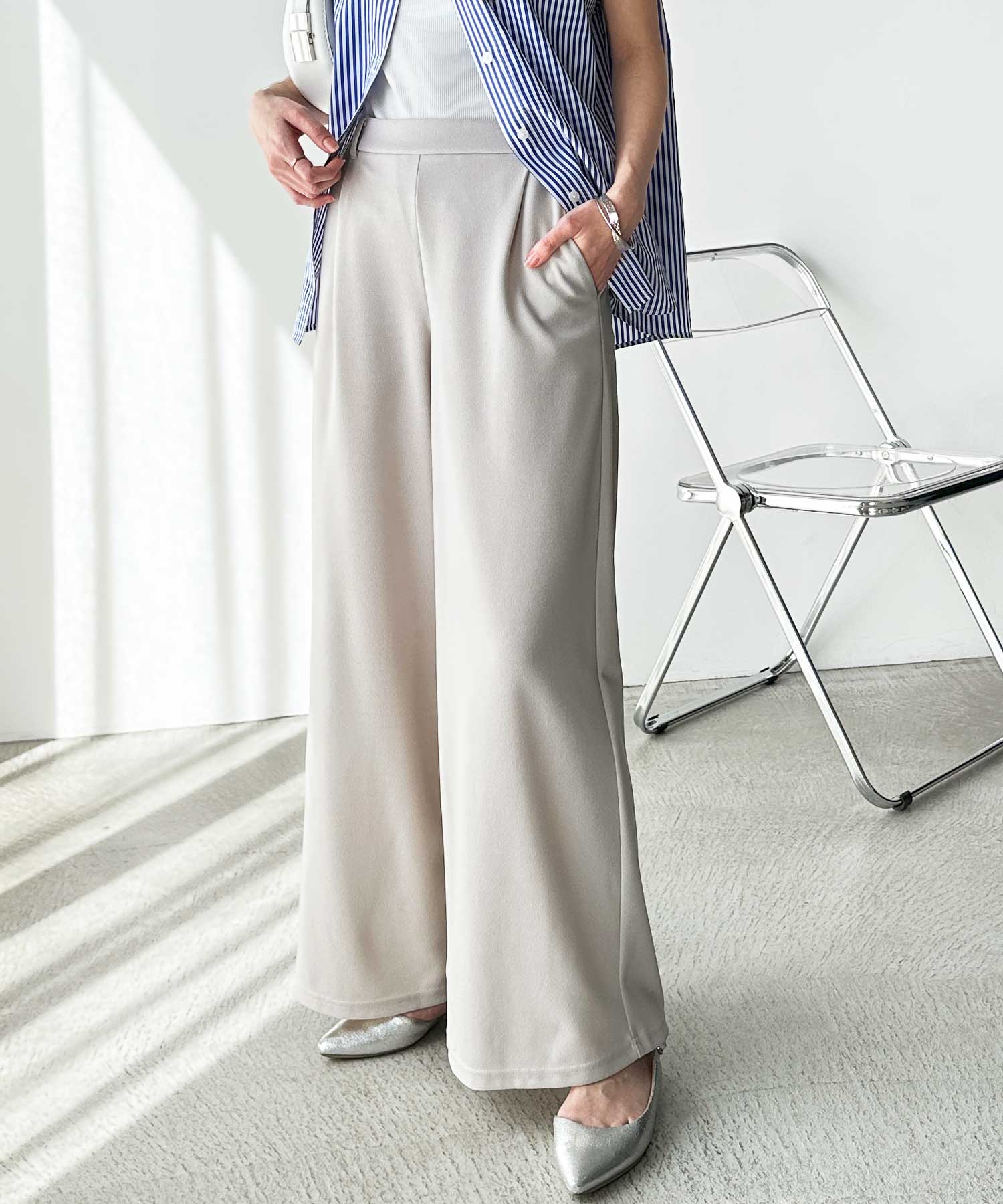 はくだけで美脚見えする美しいシルエットのワイドパンツ。
