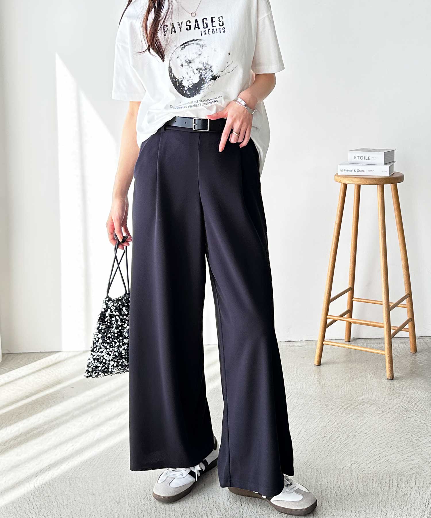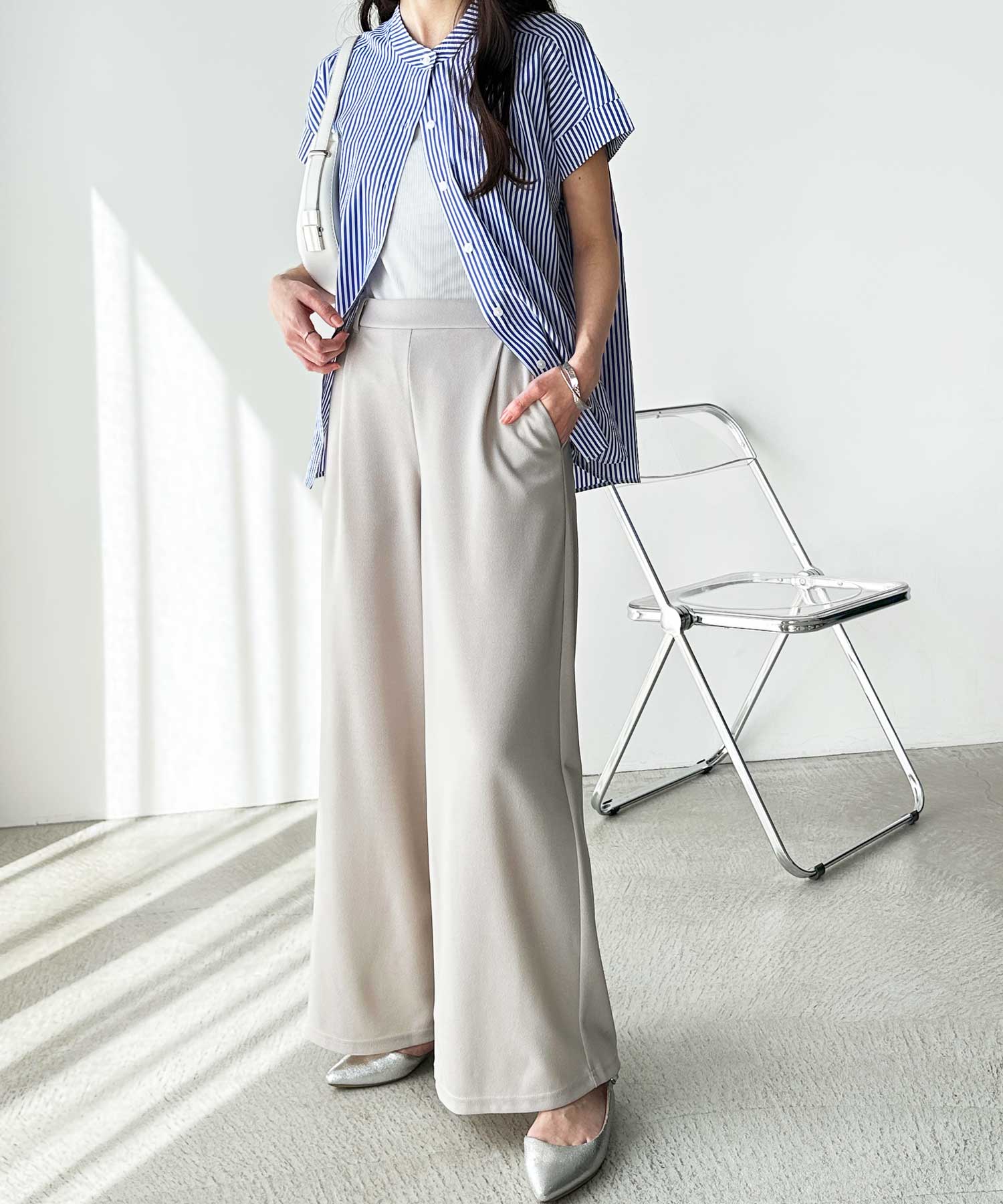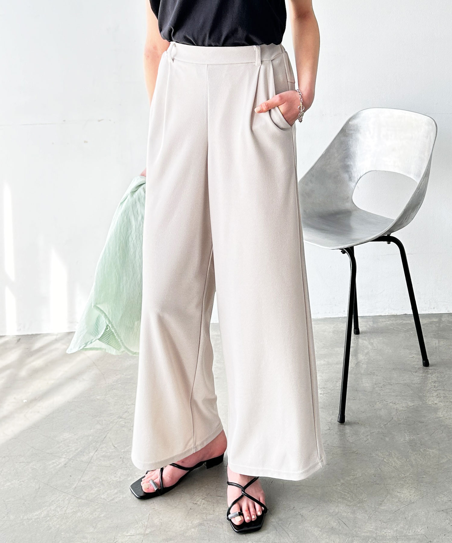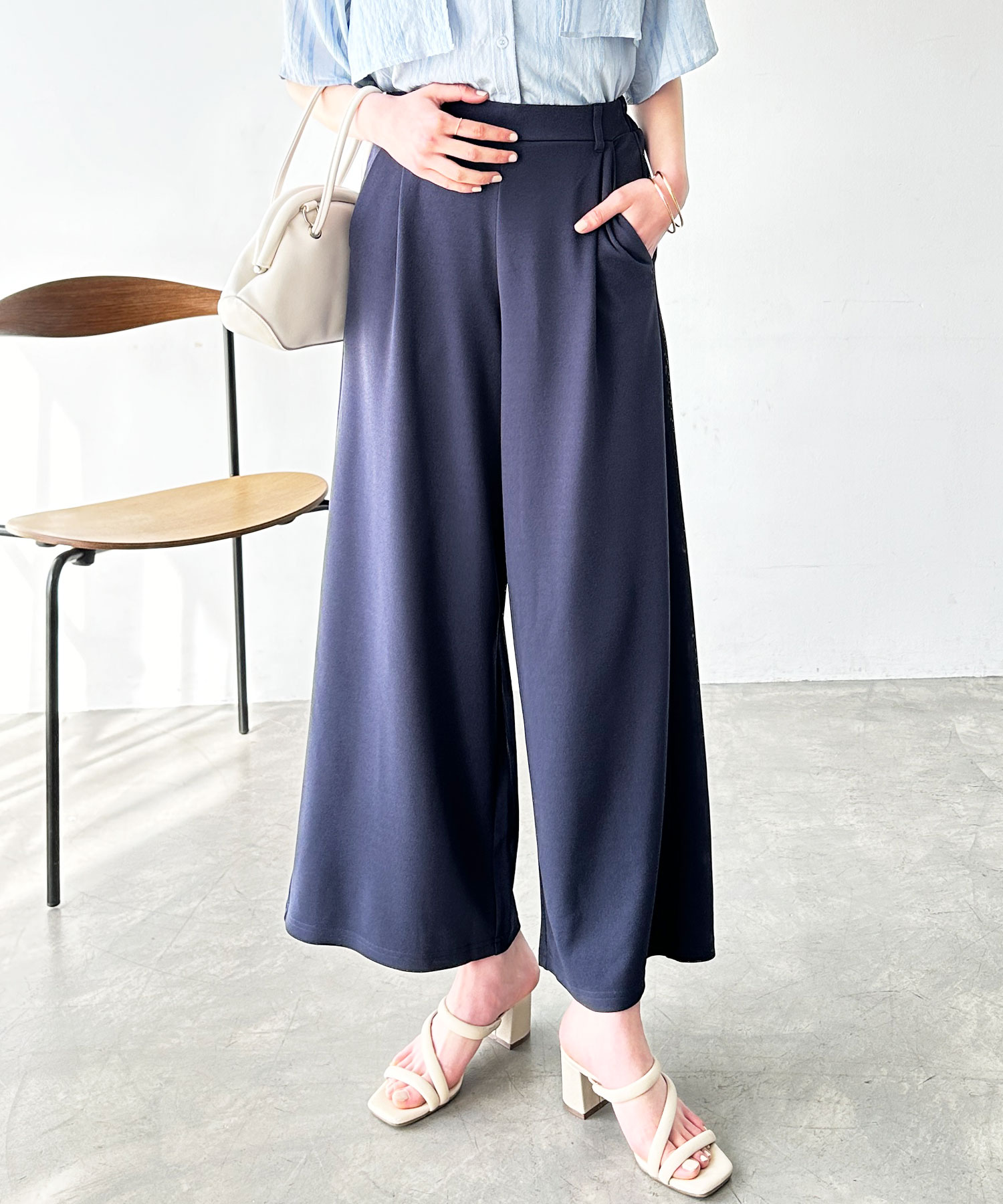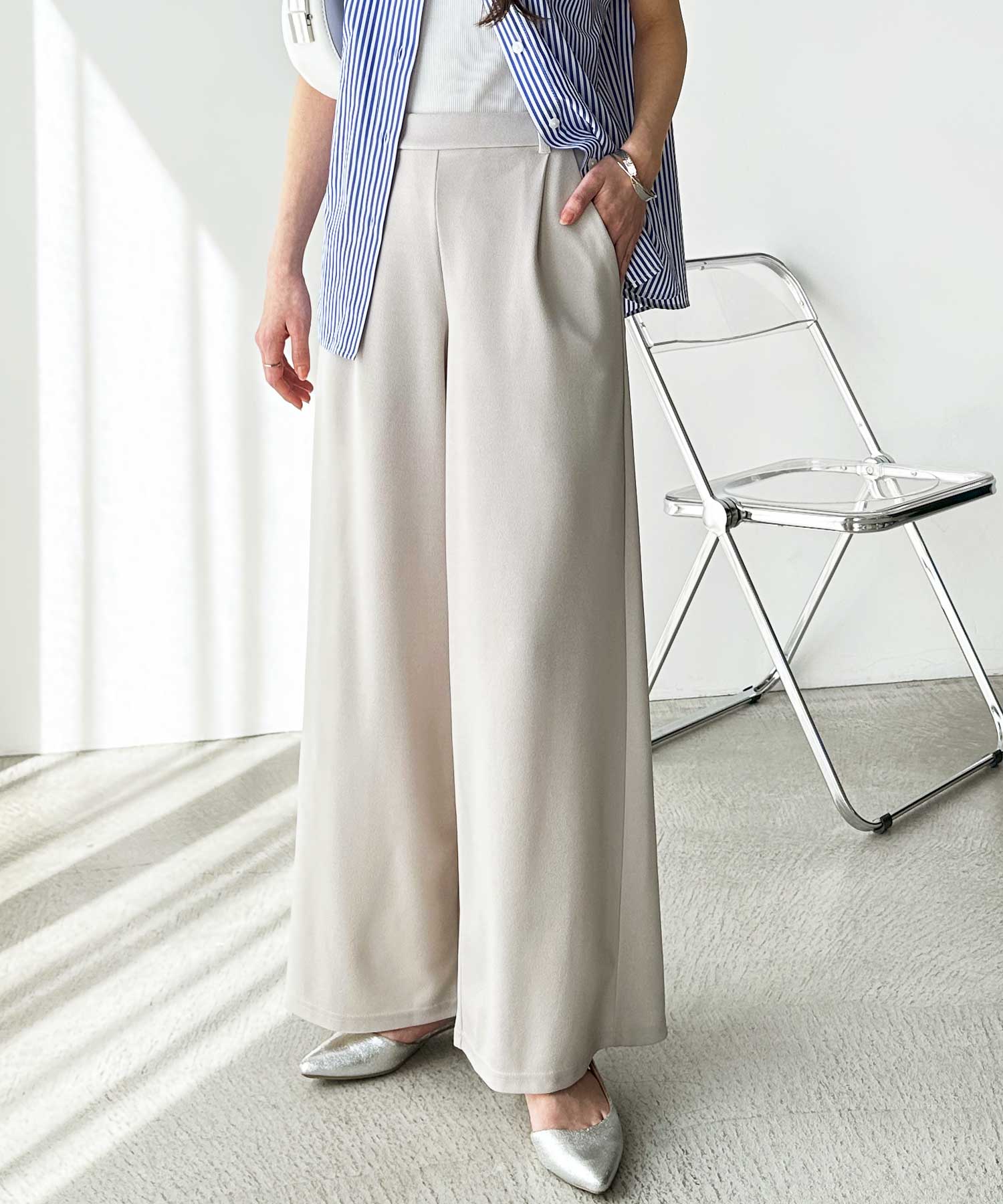 はくだけで美脚見えする美しいシルエットのワイドパンツ。