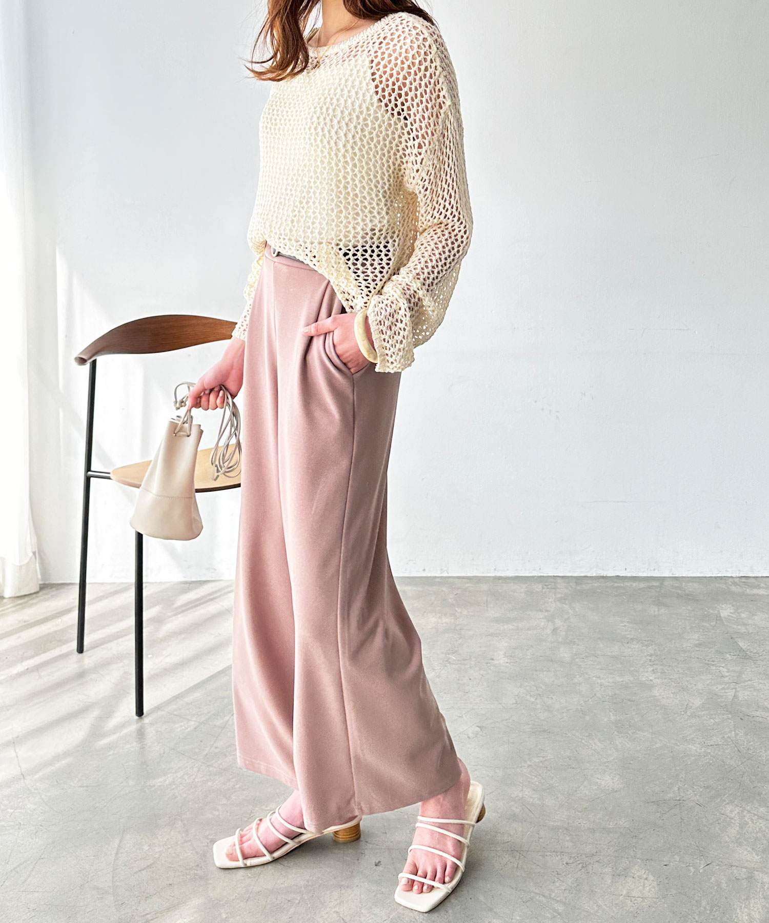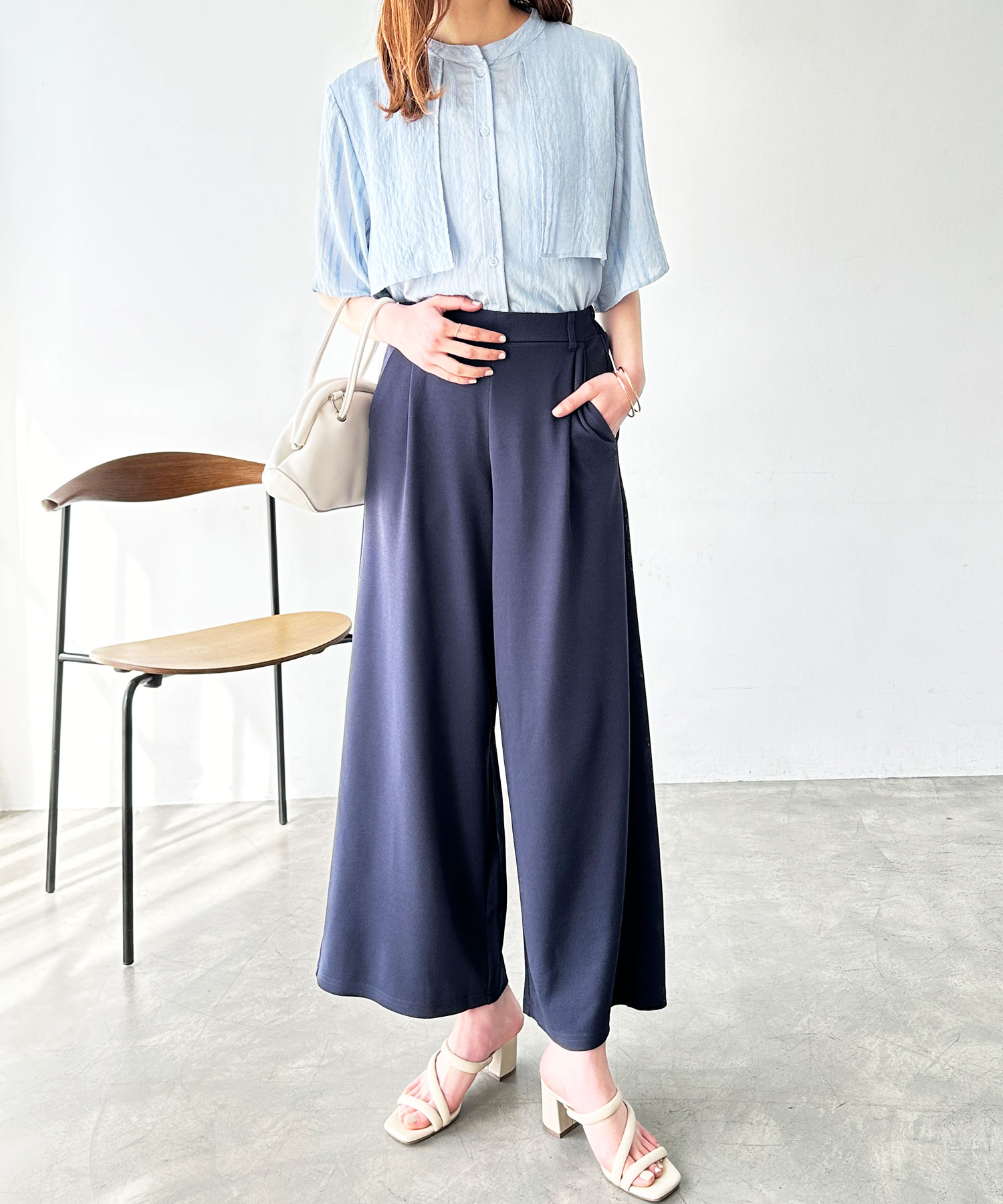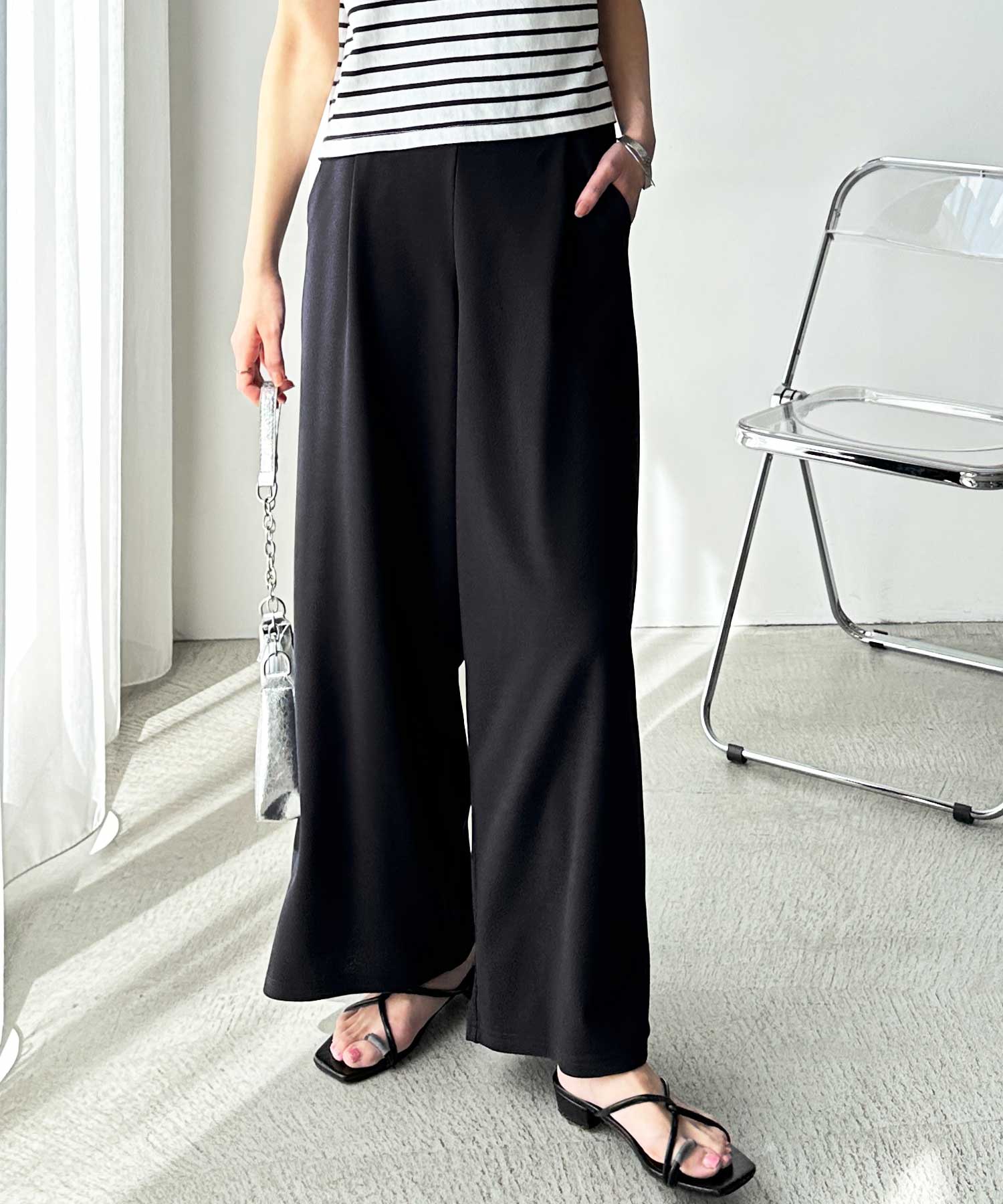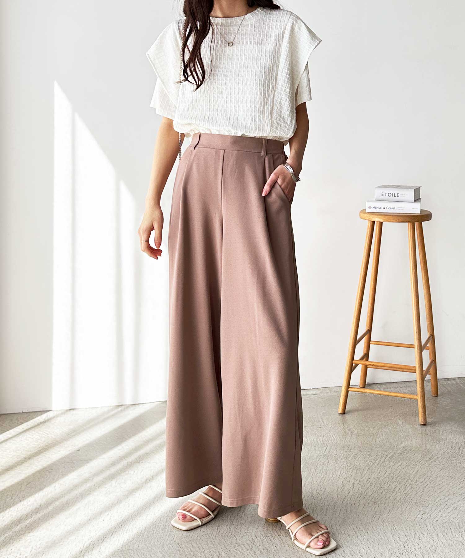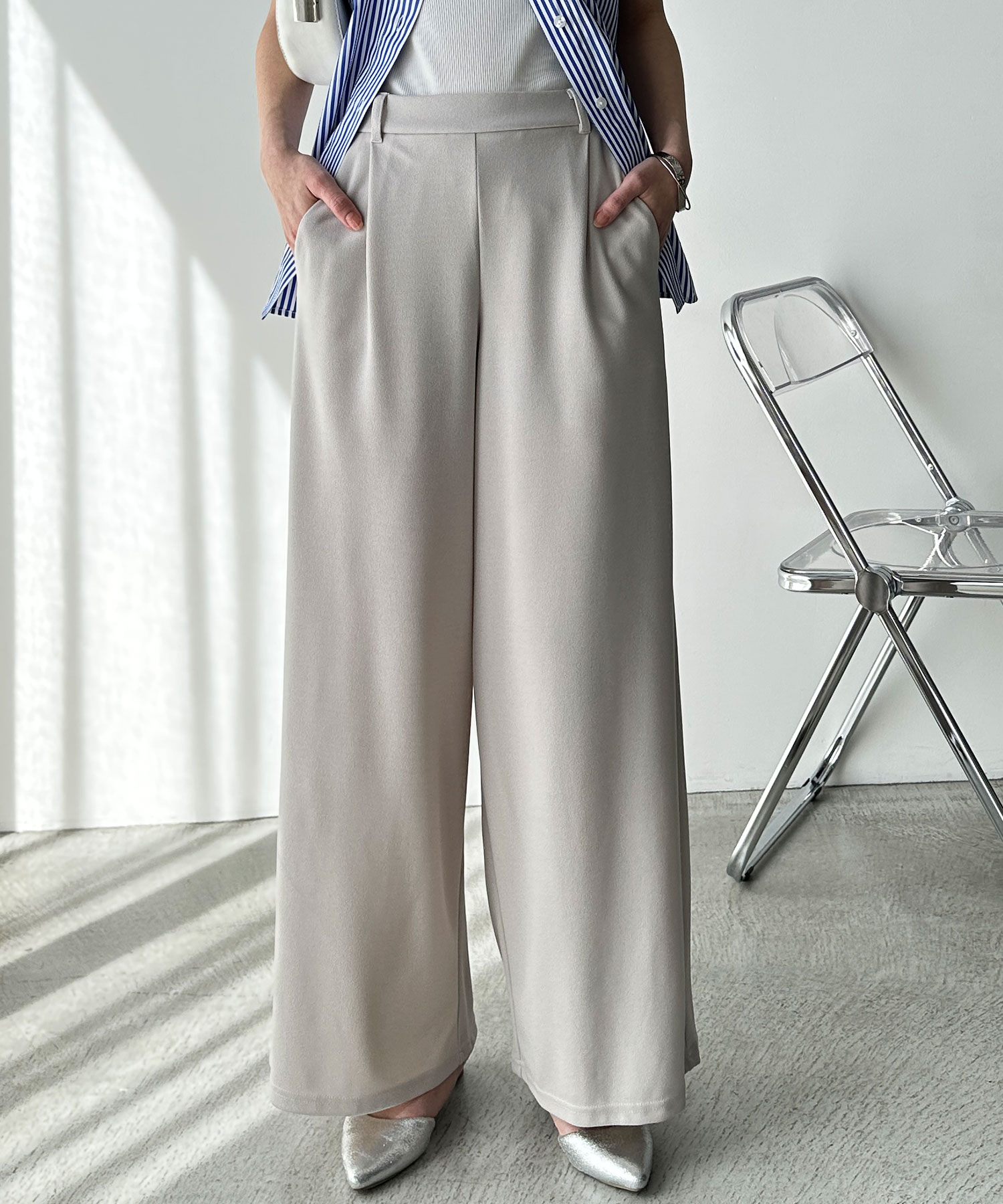 はくだけで美脚見えする美しいシルエットのワイドパンツ。