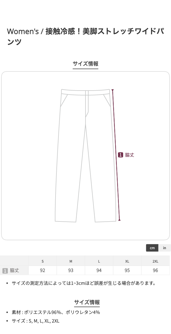 3L:ウエスト(ヌード寸)77~83、ヒップ(ヌード寸)103~109、総丈96