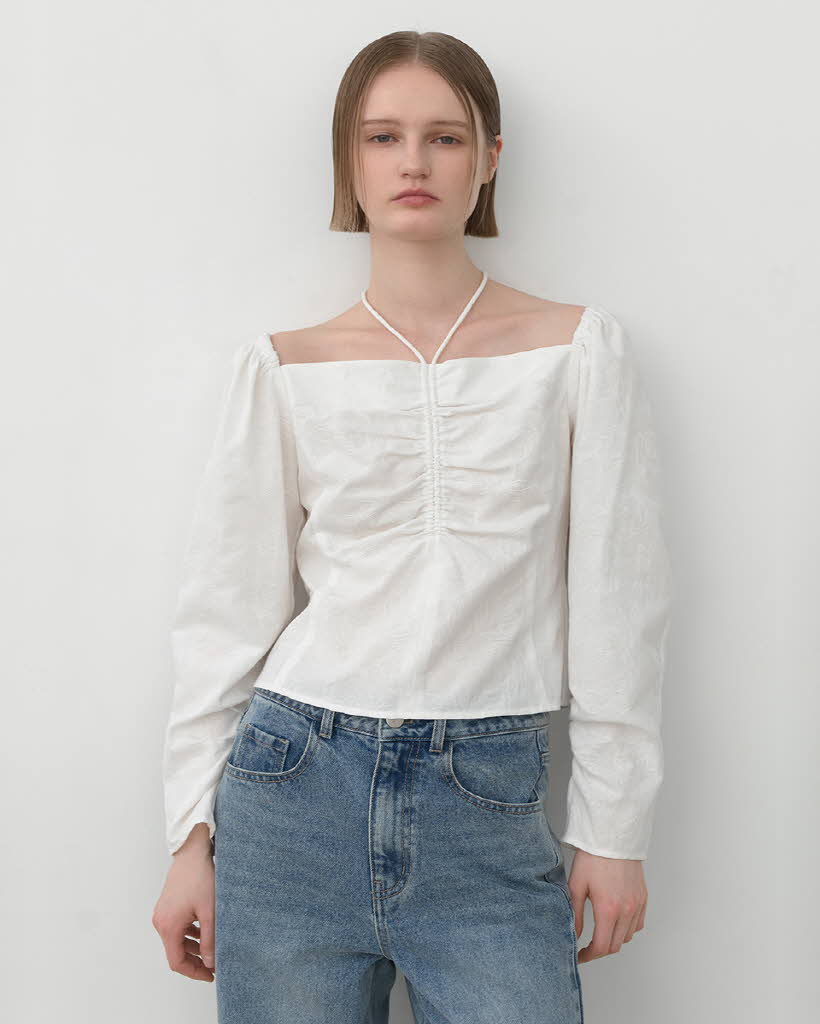 (BL-4292)NECK STRING SHIRRING BLOUSE