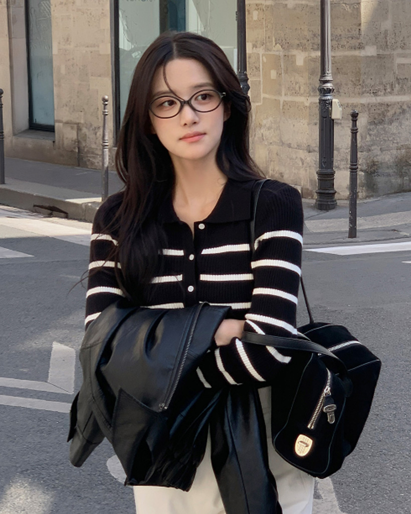 モデル|アイボリー×ブラックカラー(1)サイズ・長袖着用