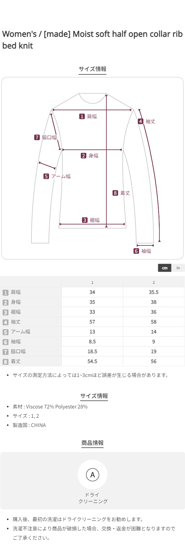 モデル|クリームアイボリーカラー(1)サイズ・長袖着用