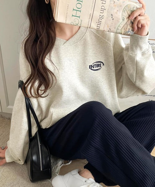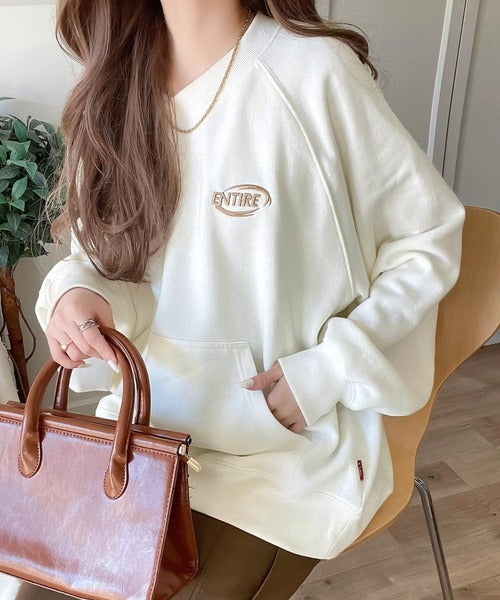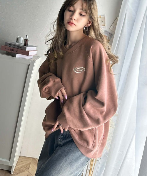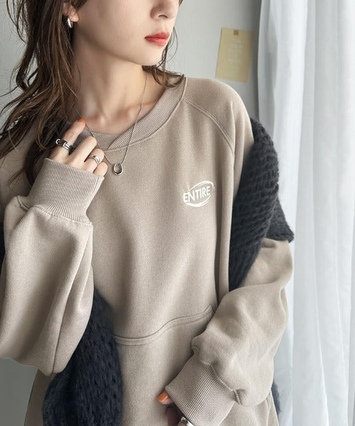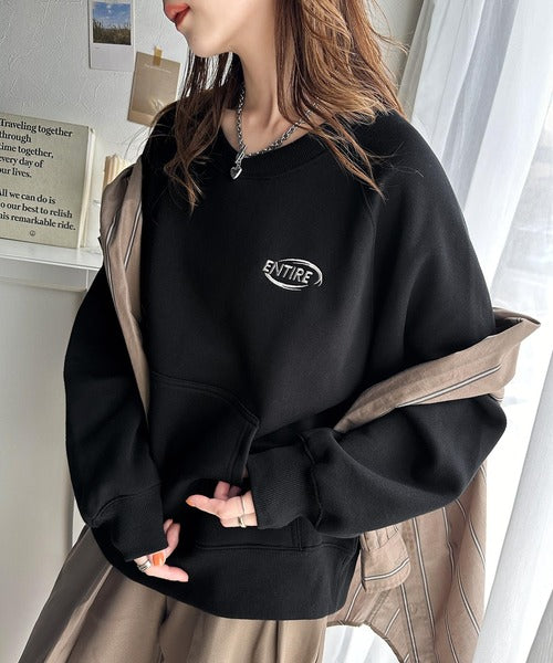 胸元にワンポイントのロゴがデザインされたラグランスウェット。