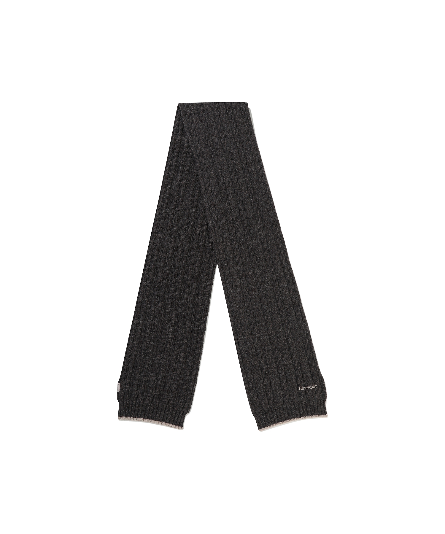 LOGO CABLE LAMBS WOOL MUFFLER - Brown