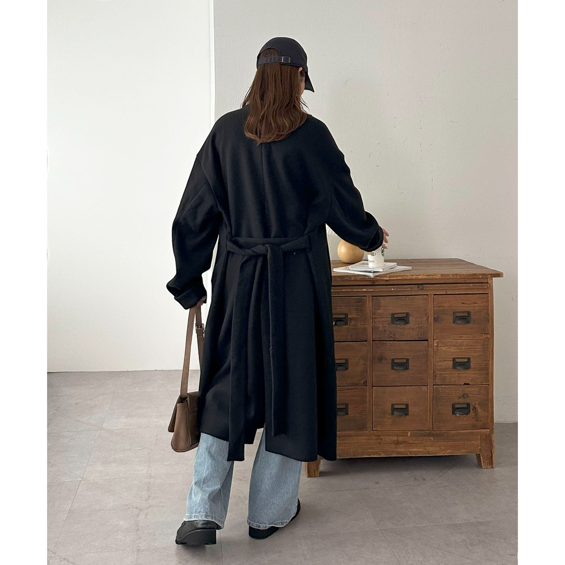 ベルトは後ろで結んでもポイントに◎コーデや気温に合わせた着こなしができます。