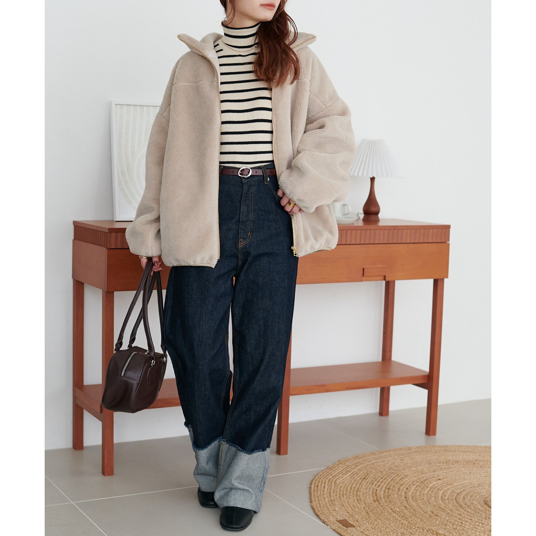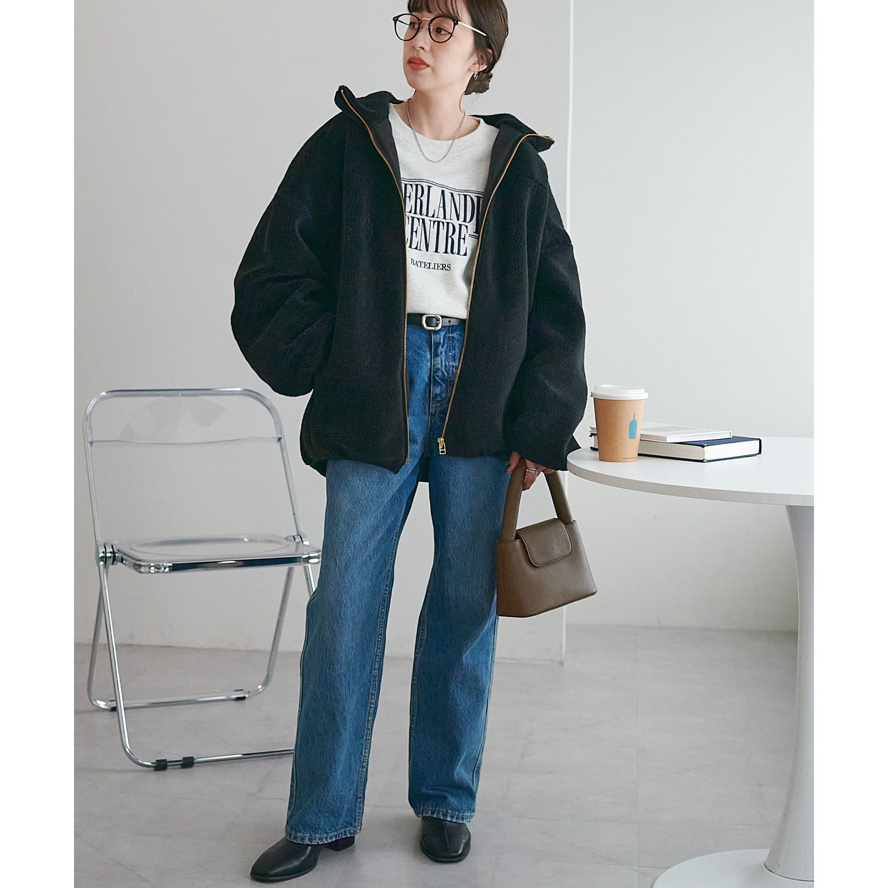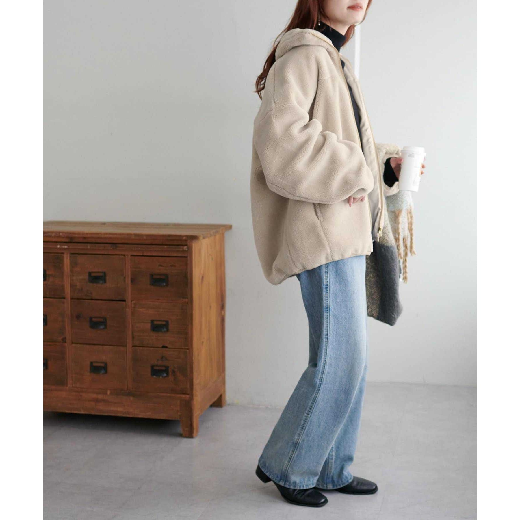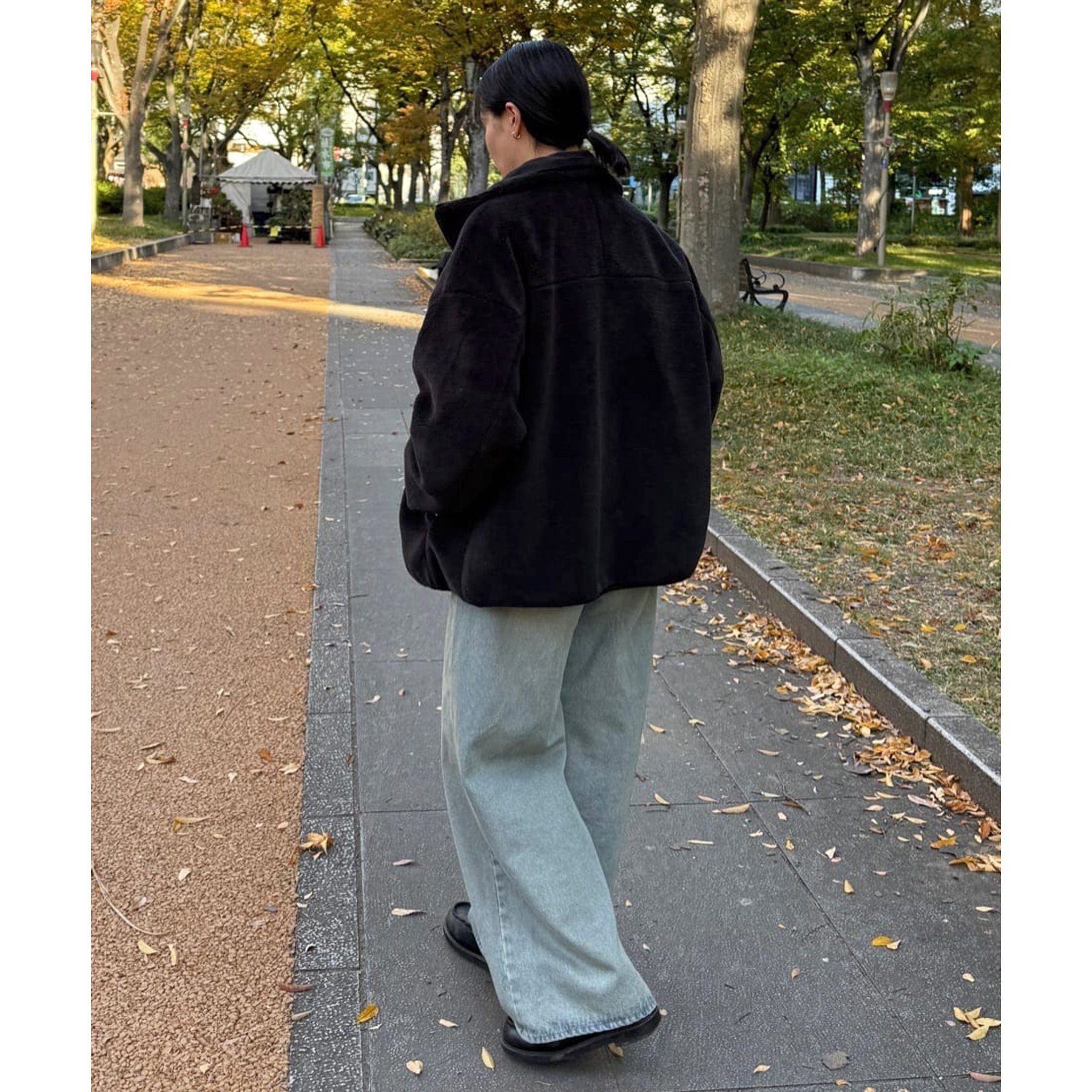 ・オーバーサイズなので厚手ニットやスウェットの上からも羽織りやすい。