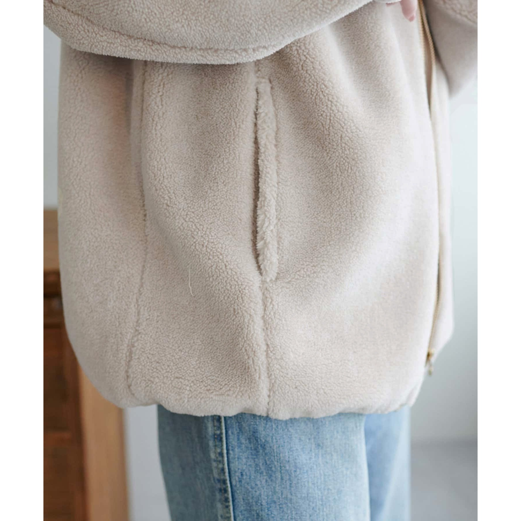 ・ふっくら柔らかな肌触りのボア素材は、柔らかな印象に。