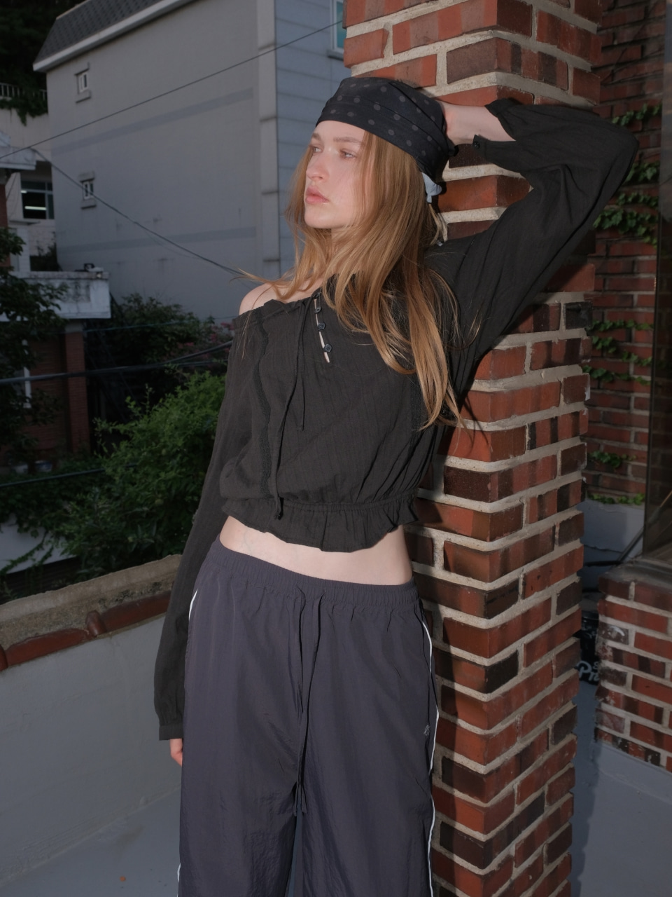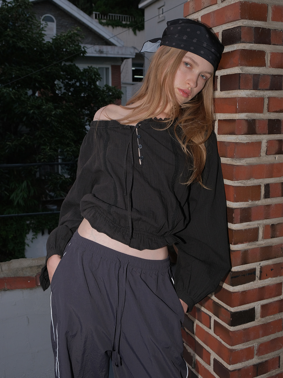 Cotton Lace Button Blouse, Black
