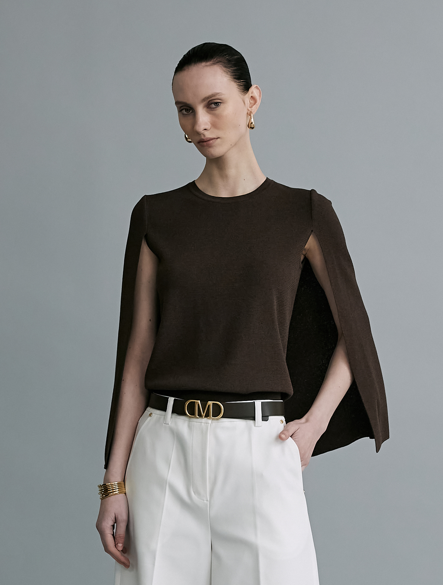 Cape Layered knit Pullover - Brown