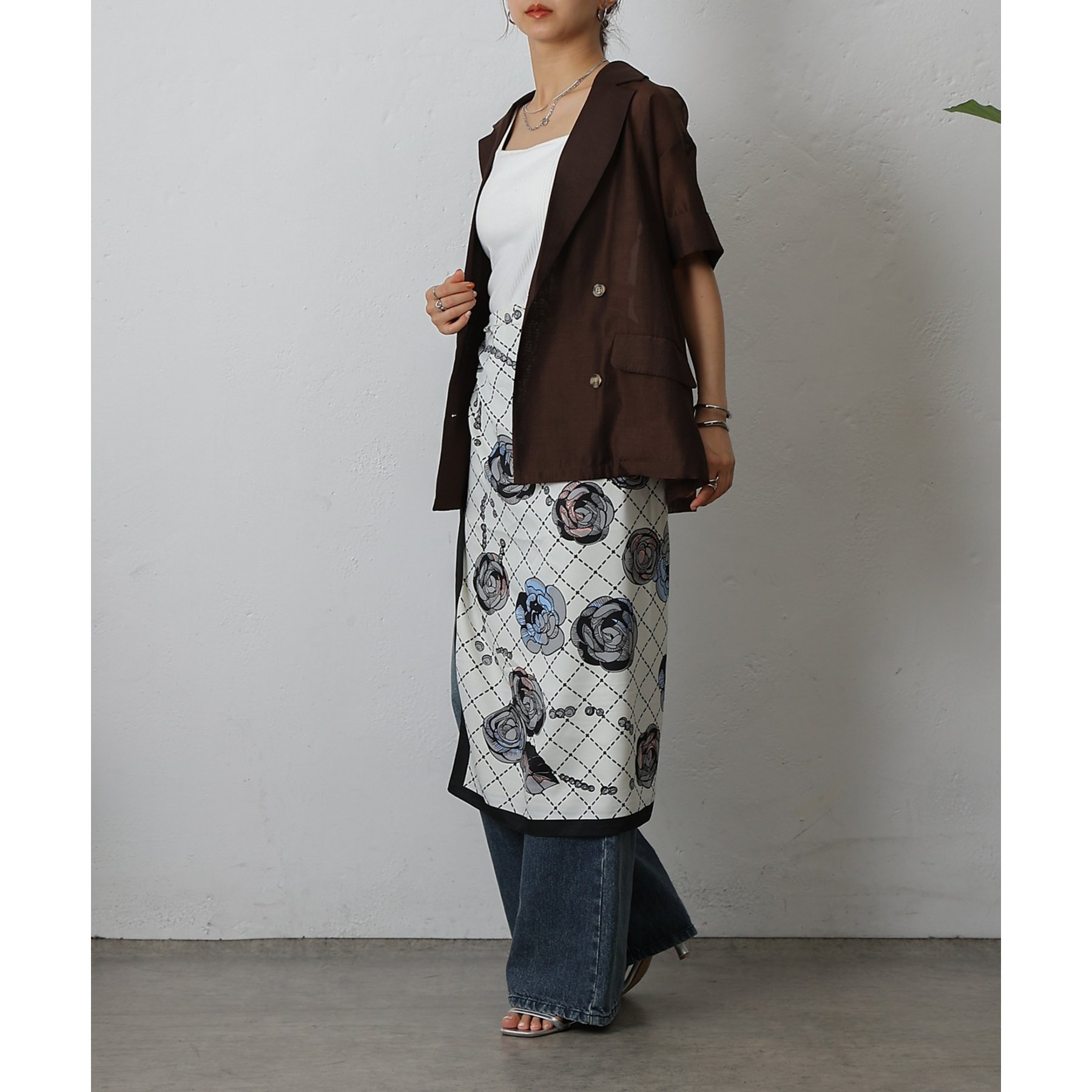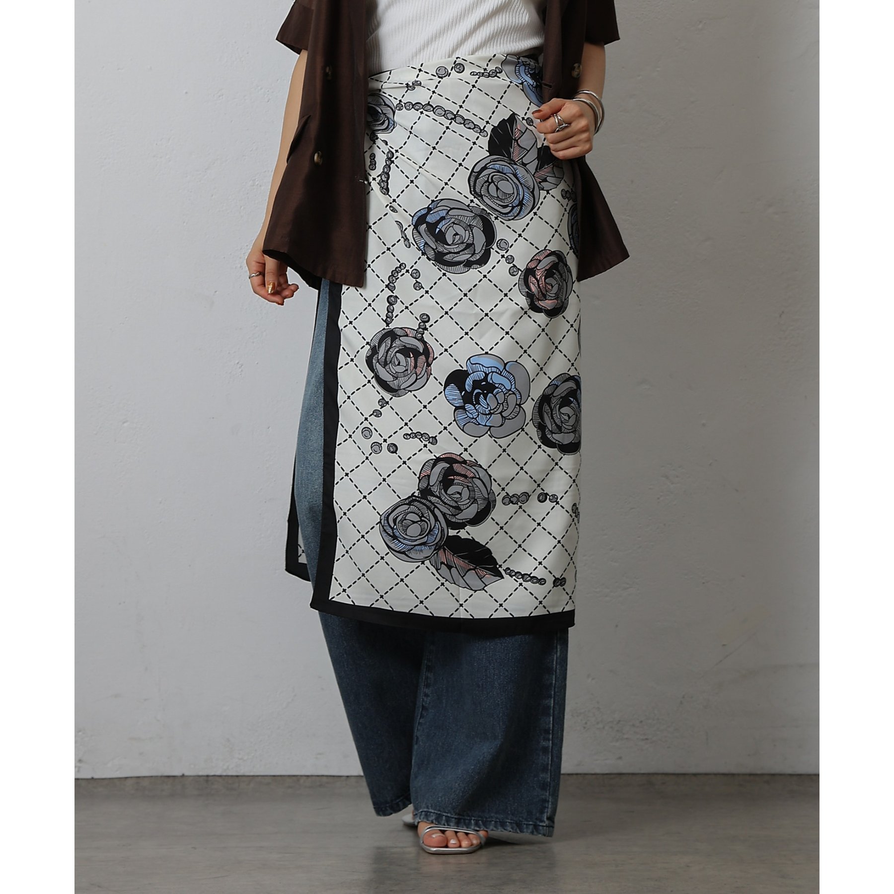 シックなモノトーンを基調に、繊細なタッチで描かれたローズモチーフが印象的な大判スカーフ。モノトーンの色使いが、上品で洗練された雰囲気を演出します。普段のコーディネートにプラスするだけで、ワンランク上のスタイルが完成します。美しい光沢感となめらかな肌触りが特徴で、いつものスタイルに上品なエッセンスをプラス。大判サイズなので、アレンジは自由自在。首元にふんわりと巻けば、顔まわりを華やかに、そして小顔効果も期待できます。シンプルなニットやシャツに合わせるだけで、トレンド感のある着こなしに。また、ヘアアレンジや頭巾取り入れれば、一気にこなれ感がアップします。広げて肩に羽織れば、ストールとしても活躍。冷房対策や日焼け防止にもなり、一年を通して重宝すること間違いなしです。今季マストのスカーフを楽しめる1枚。
