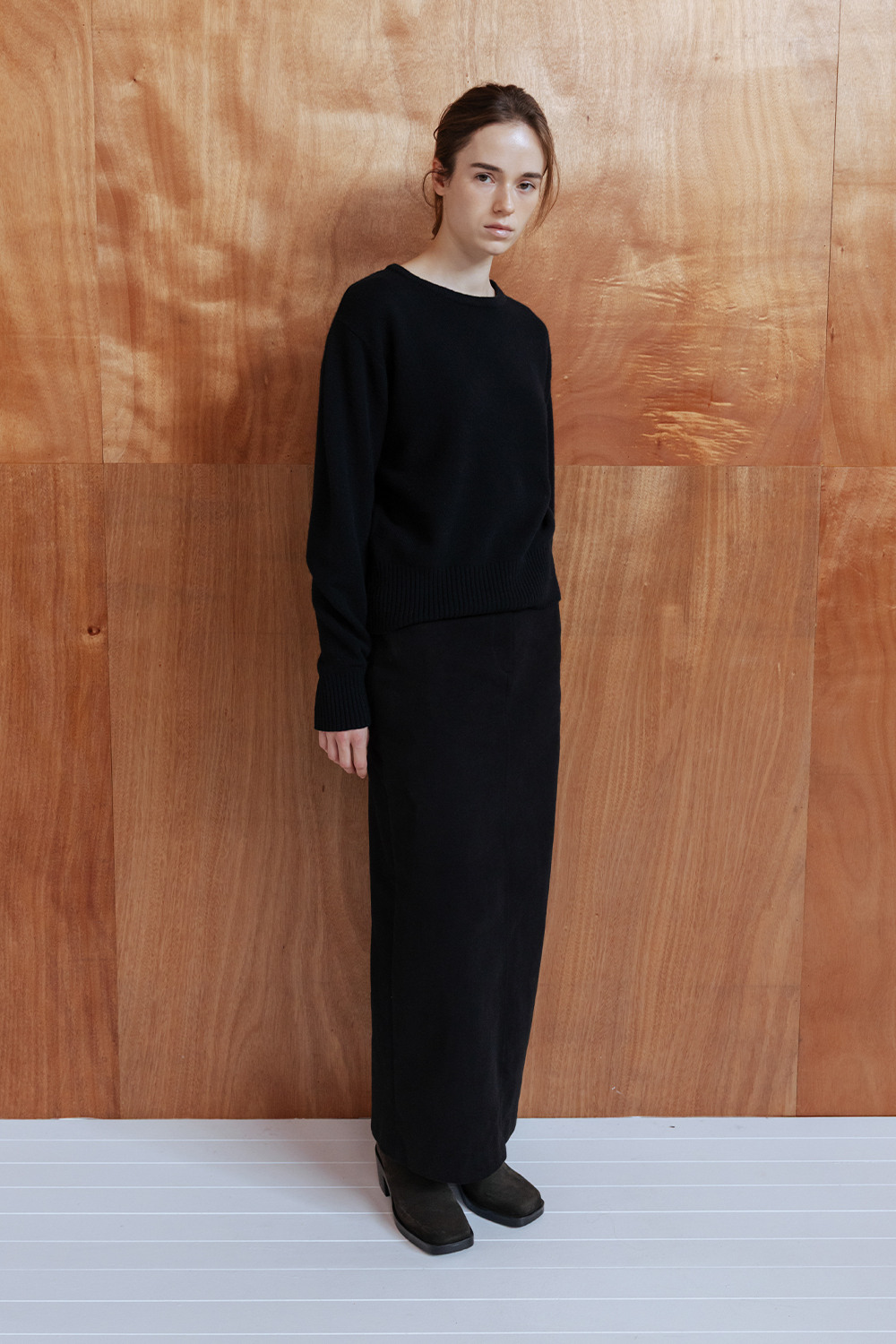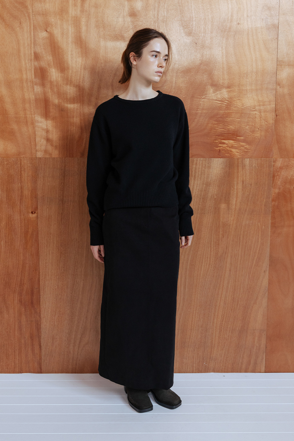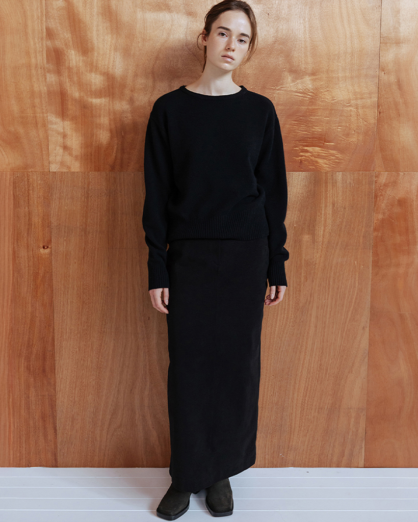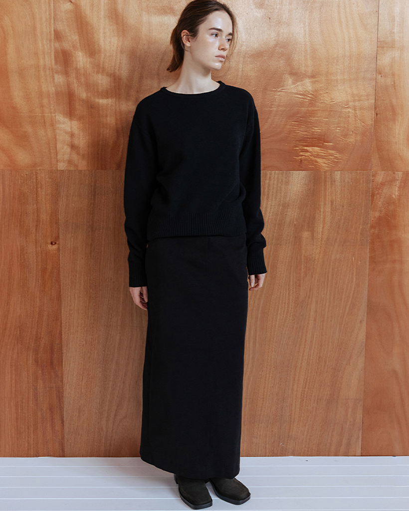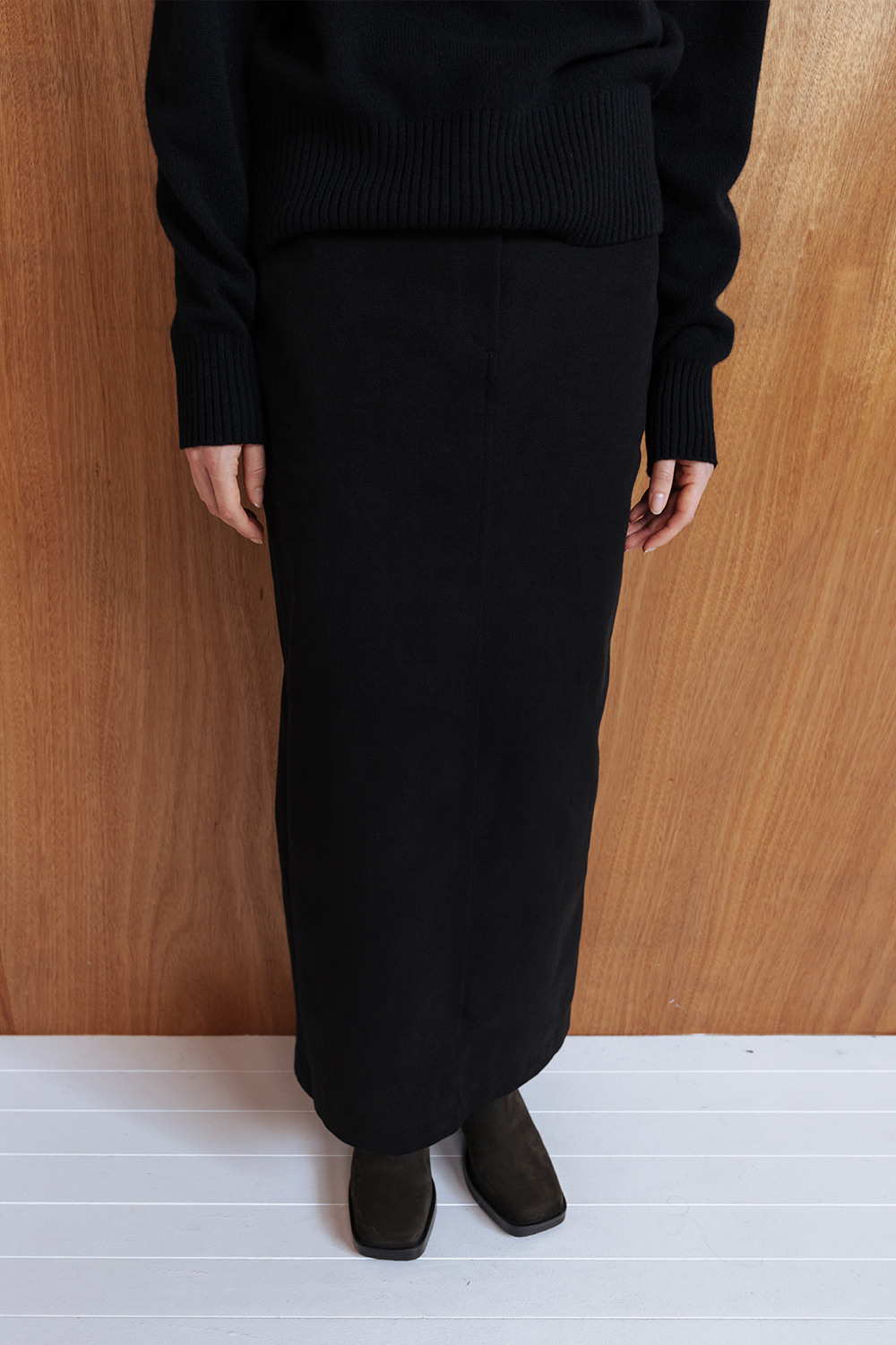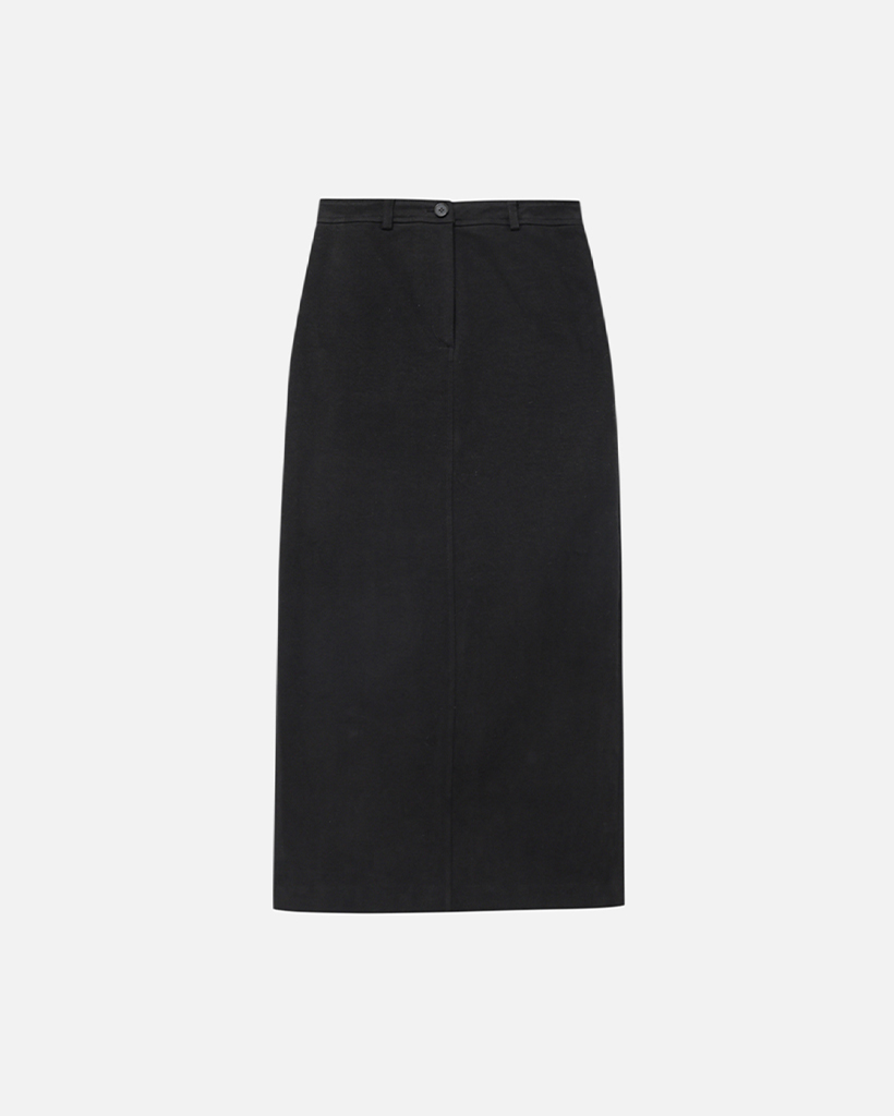 BRUSHED COTTON TWILL LONG SKIRT - BLACK