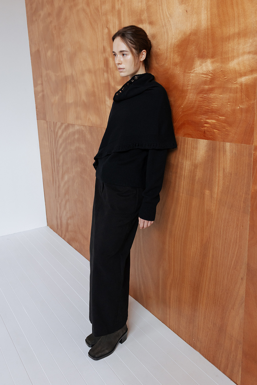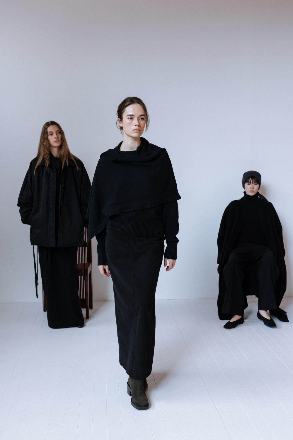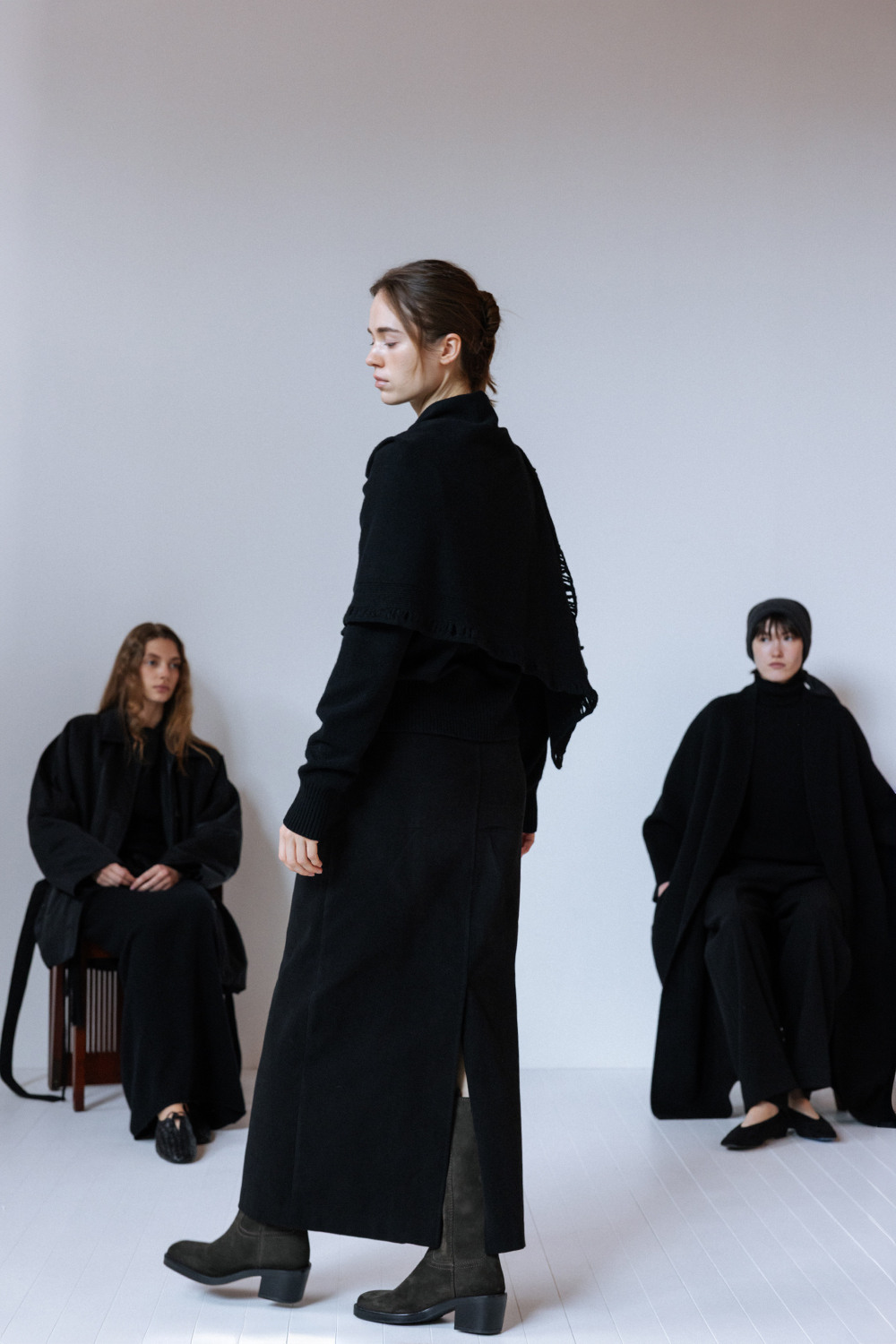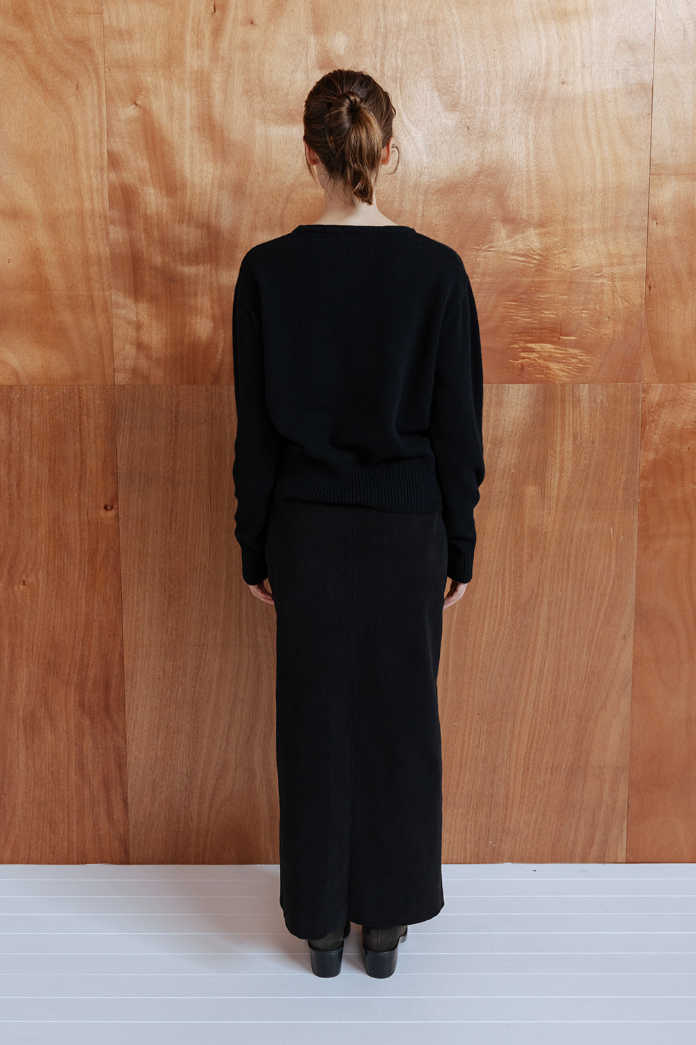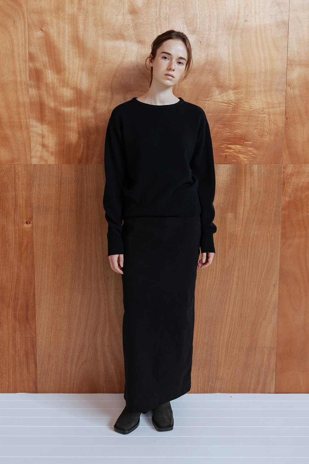 BRUSHED COTTON TWILL LONG SKIRT - BLACK