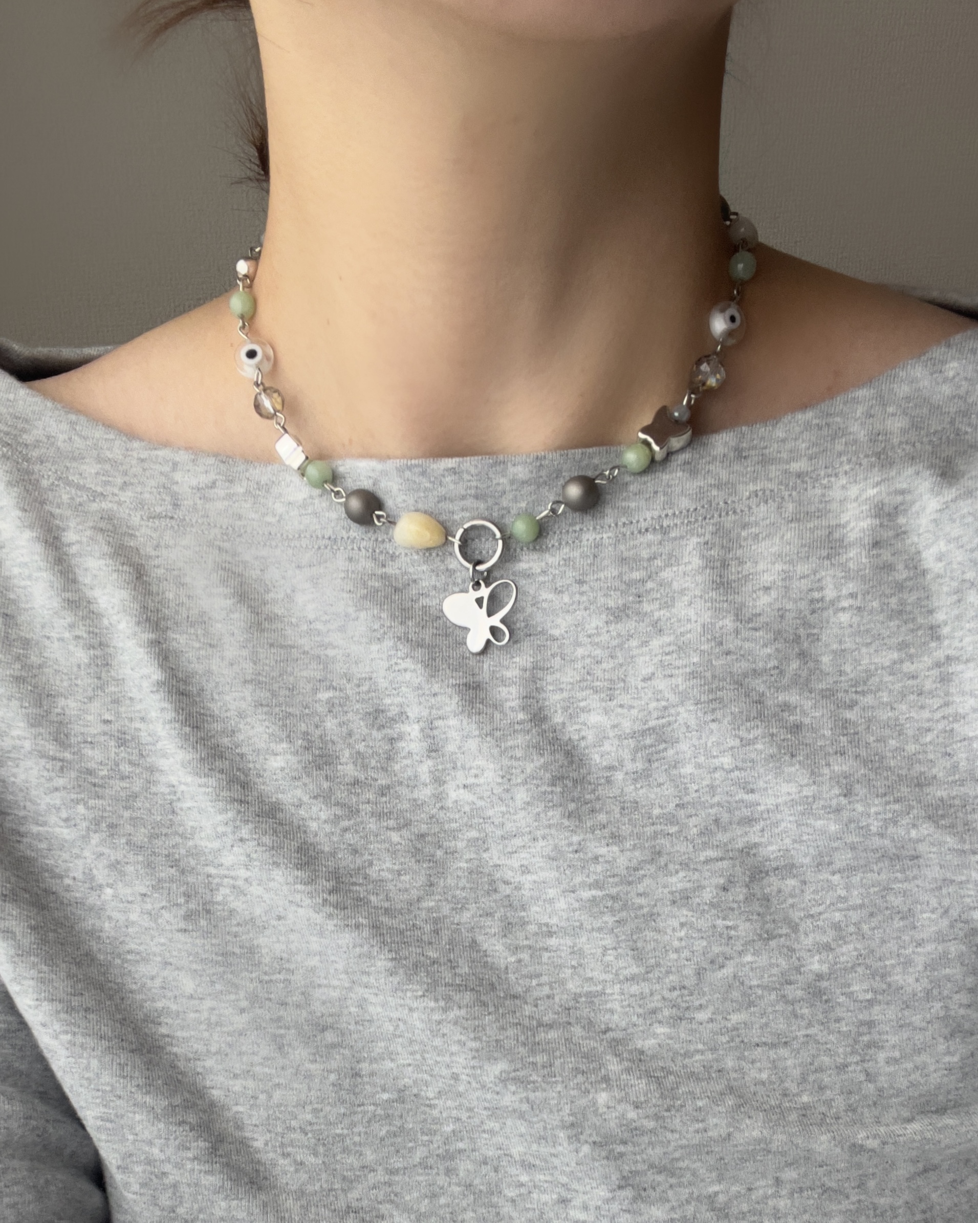 蝶 ビーズネックレス